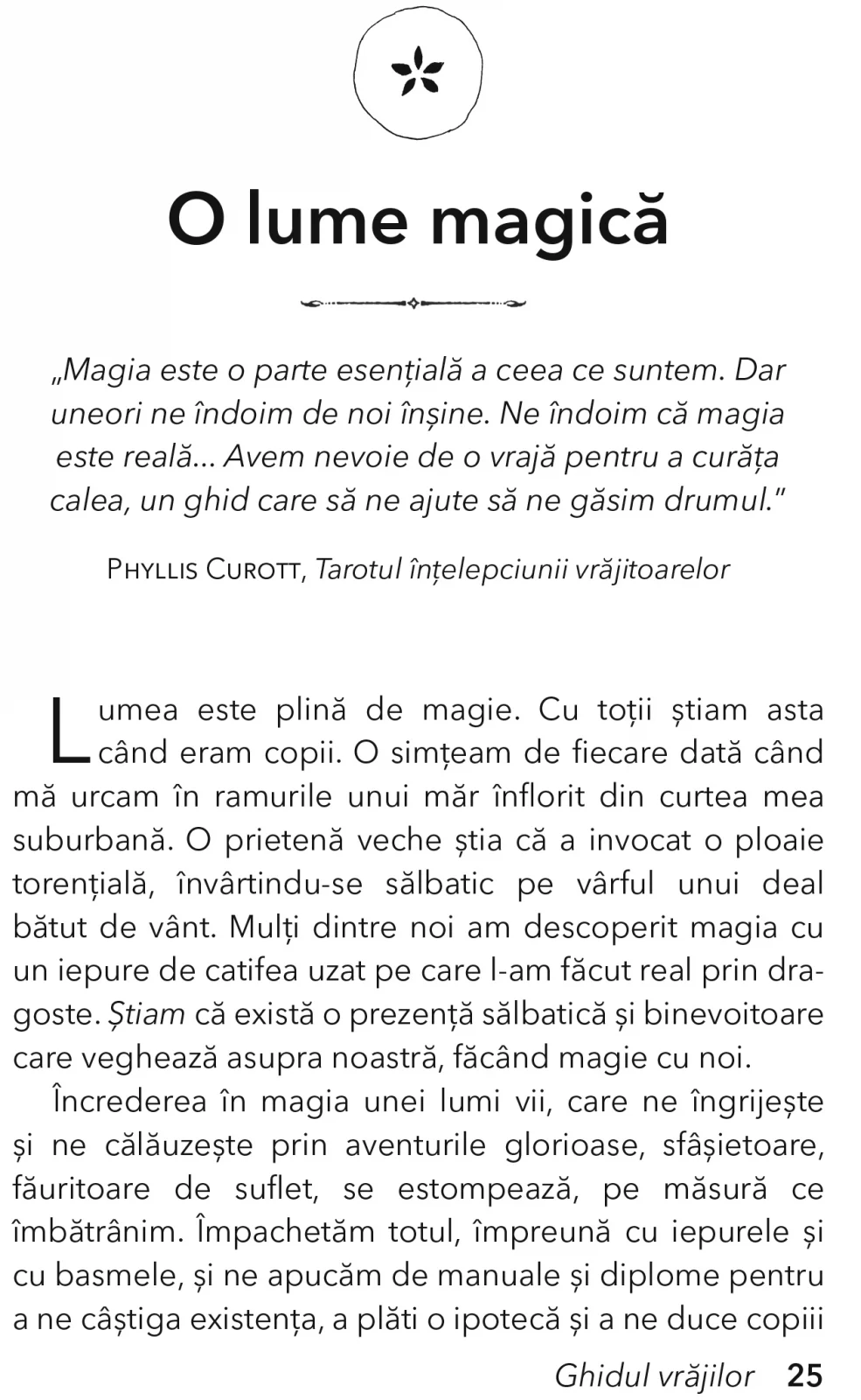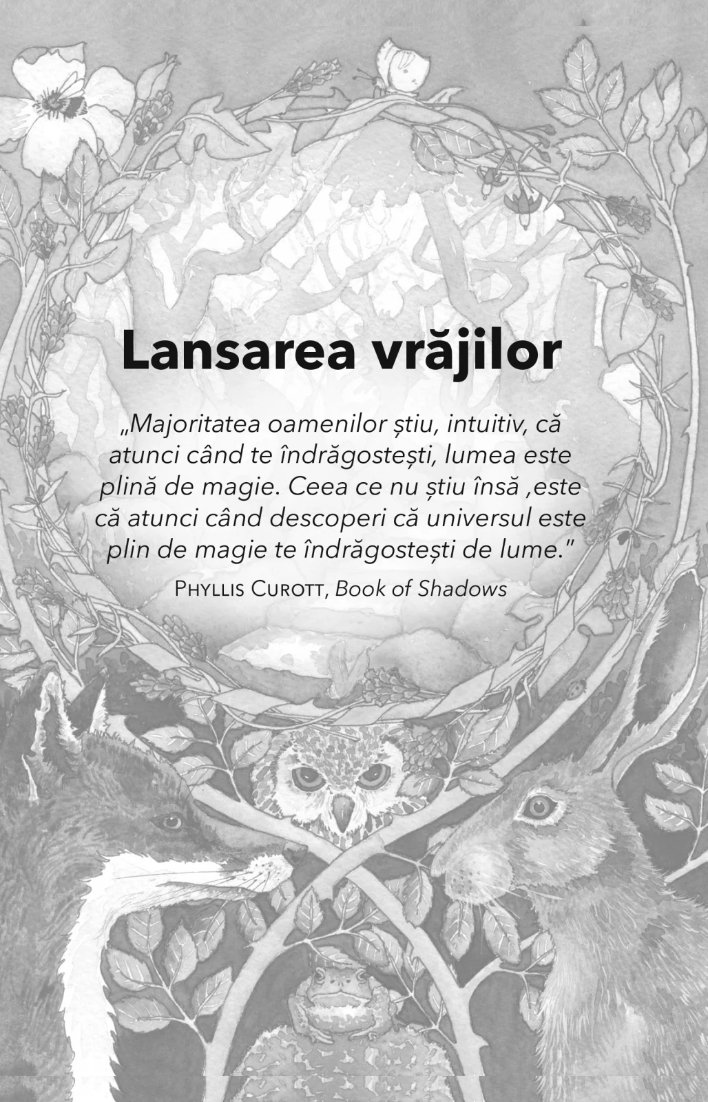 Alese cu grija din Grimoarele personale ale renumitei Preotese Wiccan Phyllis Curott si dintr-o viata plina de iubire divina, menite sa-ti umple viata de magie, vrajile din acest ghid te vor ajuta sa atragi iubirea si abundenta, sa-ti cultivi grija de sine si linistea interioara, sa te eliberezi de povara trecutului, sa invoci forta si puterea scopului tau si sa-ti deschizi spiritul catre Puterea Magica a Mamei Pamant si splendoarea vietii.