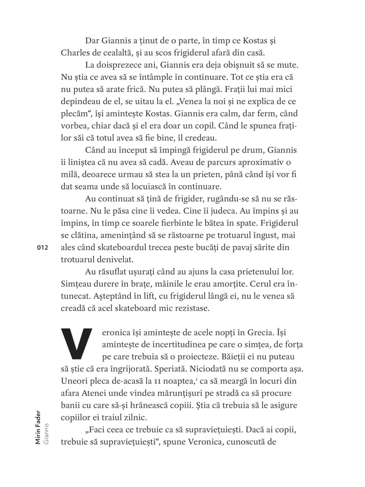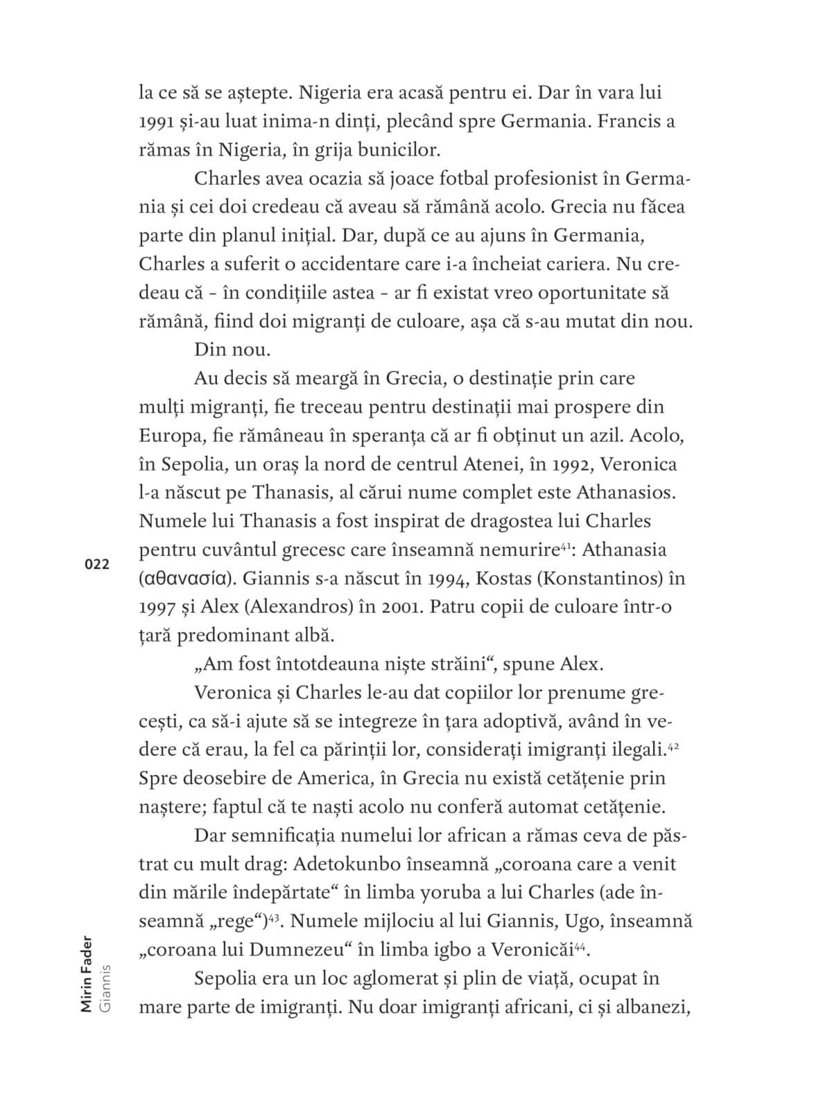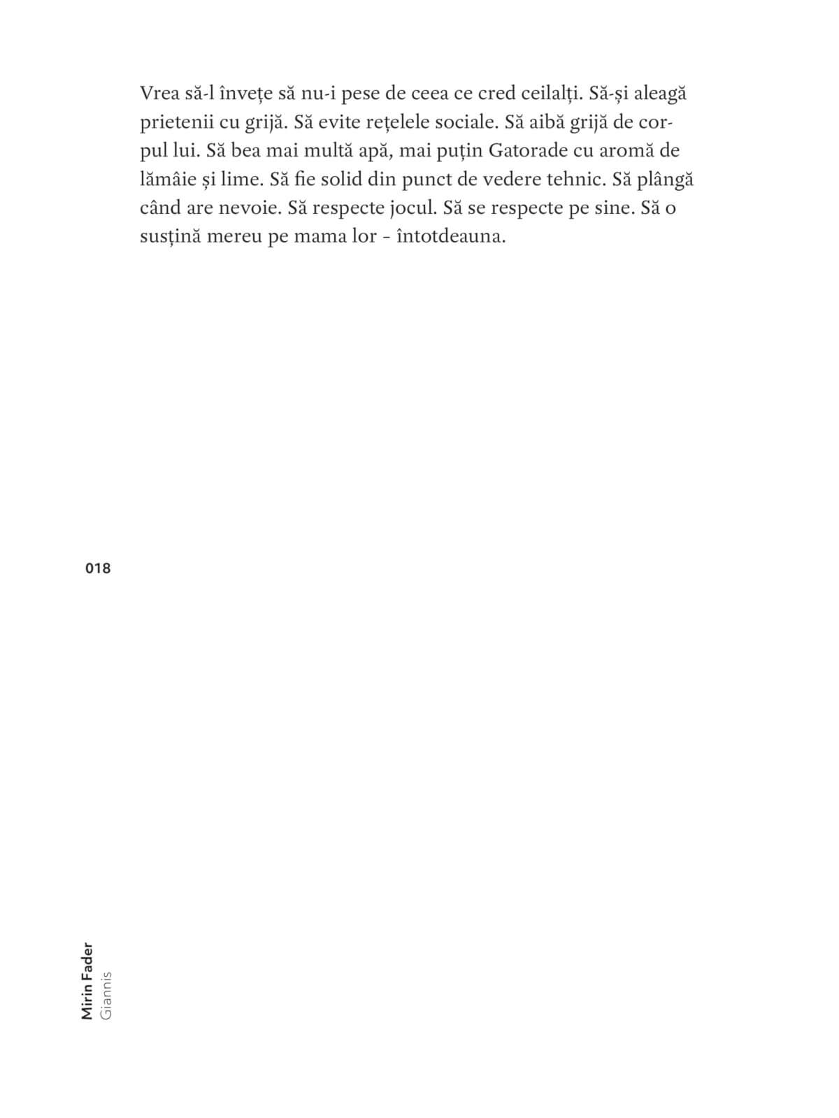 Giannis dezvăluie o poveste mai nuanțată, despre cât de singur și izolat s-a simțit, adaptându-se la cultura americană, despre complexitatea confruntării cu originea lui de om de culoare și cetățean de origine greacă, despre motivele pentru care este atât de dur cu el însuși și cu neajunsurile sale – un impuls care îl alimentează în fiecare zi – și despre responsabilitatea pe care o simte, de a fi un model încurajator pentru frații lui mai mici. Fader ilustrează o vedetă mai vulnerabilă decât știu majoritatea oamenilor, o persoană care a evoluat triumfător în toate rolurile sale: tată, frate, fiu, coechipier și simbol de talie mondială.