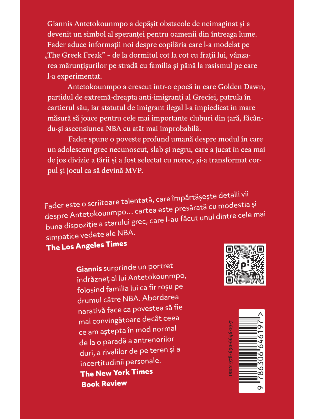 Giannis Antetokounmpo a depășit obstacole de neimaginat și a devenit un simbol al speranței pentru oamenii din întreaga lume: este personificarea visului american. Fader aduce informații noi despre copilăria care a modelat „The Greek Freak” – de la dormitul cot la cot cu frații lui, până la vânzarea mărunțișurilor pe stradă cu familia sa și rasismul pe care l-a experimentat.