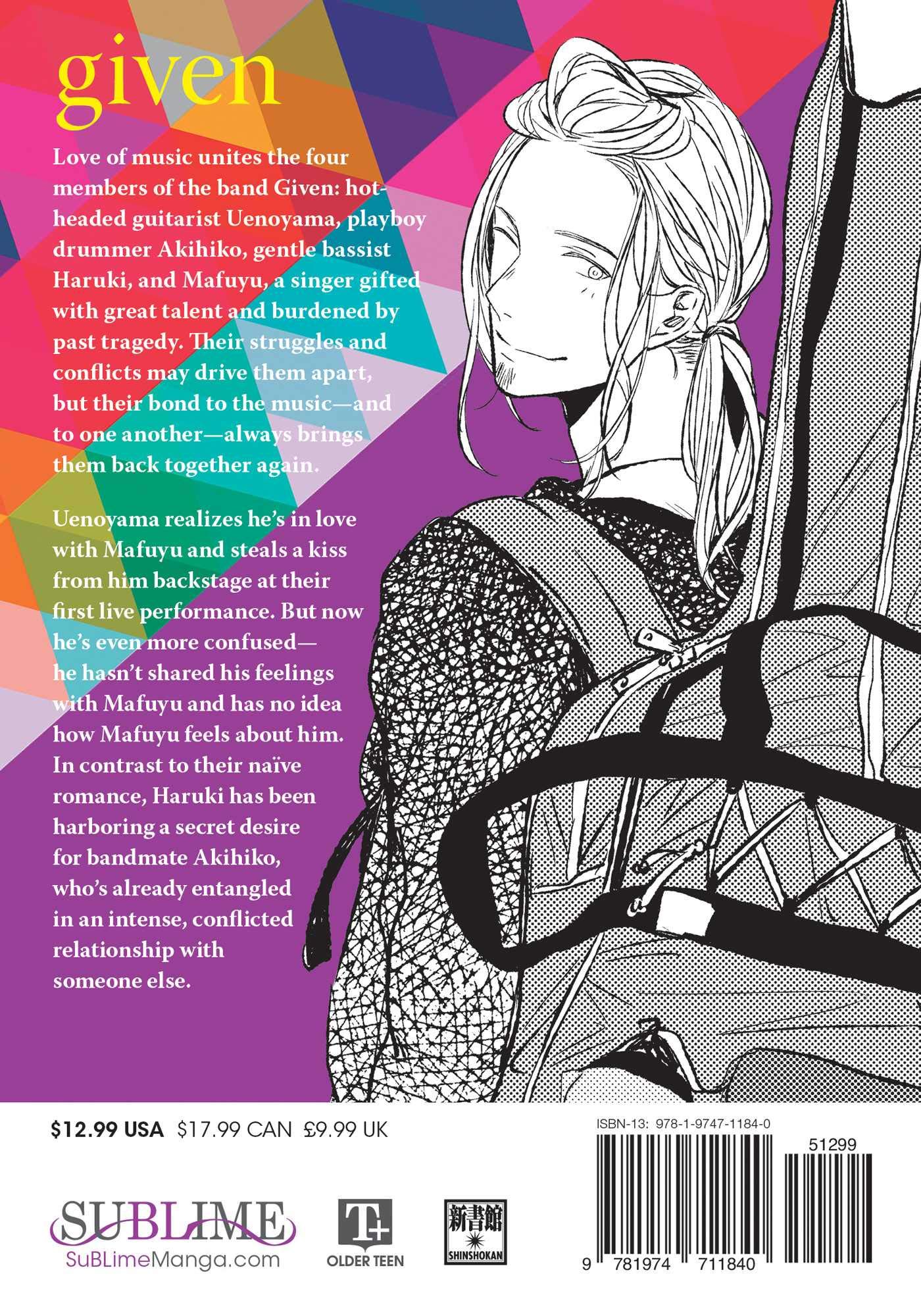 Uenoyama realizes he’s in love with Mafuyu and steals a kiss from him backstage at their first live performance. But now he’s even more confused—he hasn’t shared his feelings with Mafuyu and has no idea how Mafuyu feels about him. In contrast to their naive romance, Haruki has been harboring a secret desire for bandmate Akihiko, who’s already entangled in an intense, conflicted relationship with someone else.