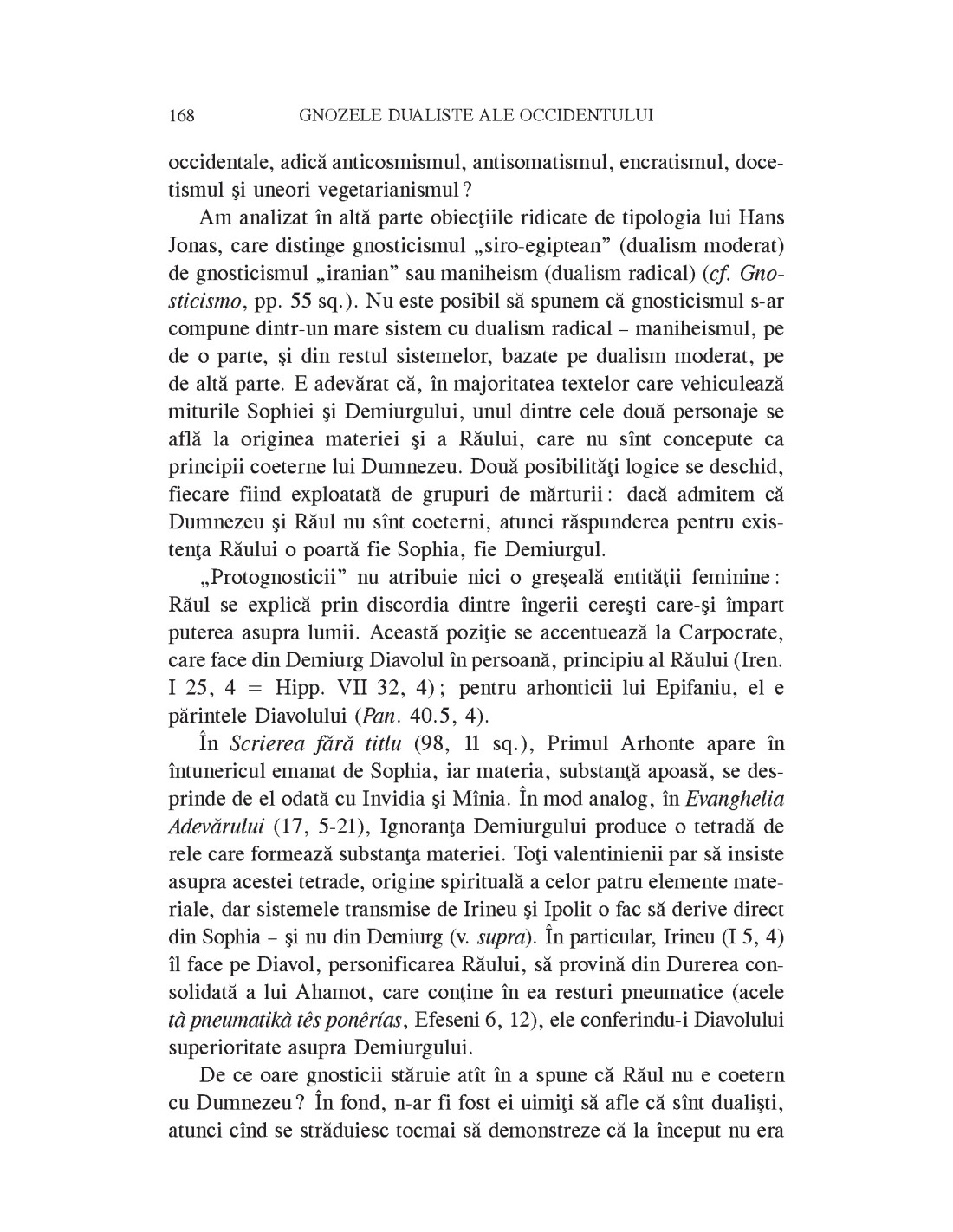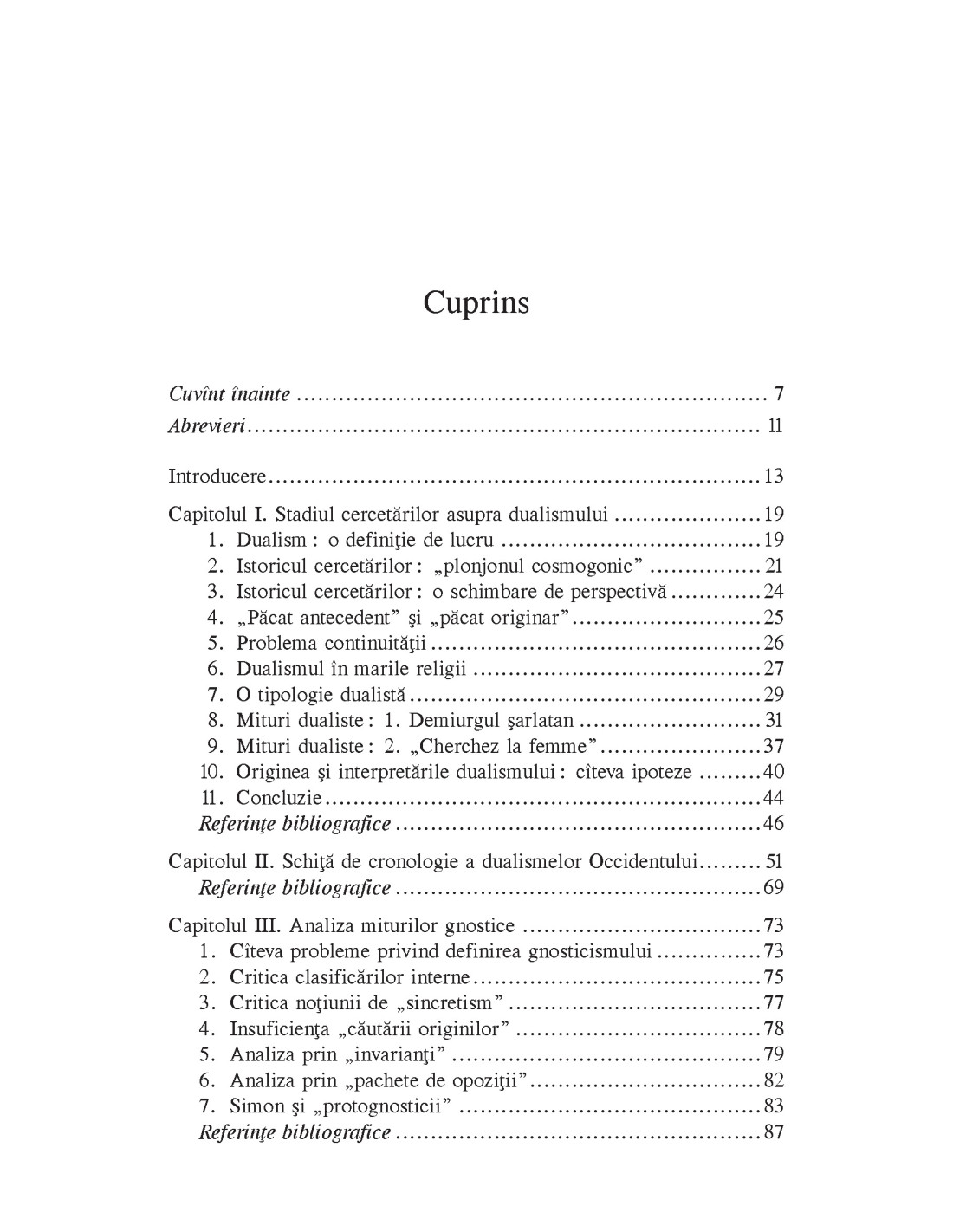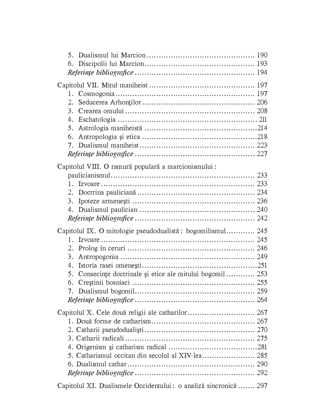 Cercetarea de față își propune să studieze miturile vehiculate de un grup specific de curente religioase: le-am numit «dualisme ale Occidentului» pentru că timp de mai bine de un mileniu au fost ținta unei preocupări constante din partea bisericilor creștine. Sistemele gnostice, Marcion, maniheismul, paulicianismul, bogomilismul și catharismul – aceasta este în mare succesiunea cronologică a curentelor respective, succesiune care pare să implice... o filiație directă sau indirectă. Dar problema raporturilor de dependență dintre «dualismele Occidentului» nu va fi examinată aici decât la nivelul structurilor mitologice.