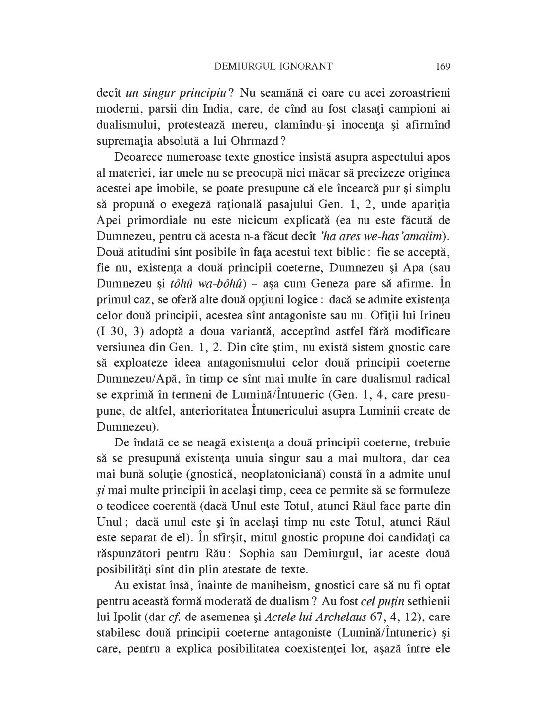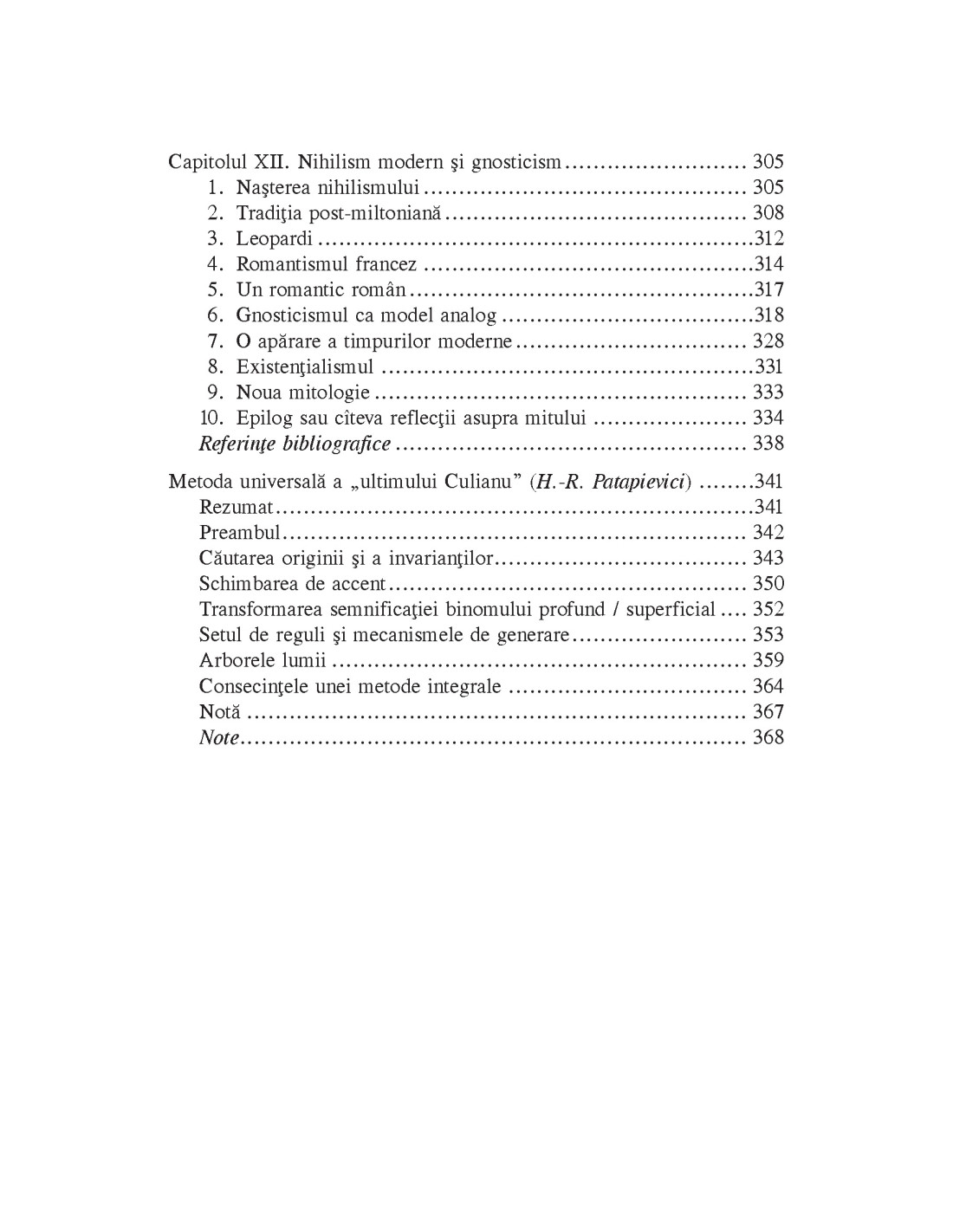 Miturile gnostice, în virtutea unei reguli simple de generare, exploatează un număr foarte mare de posibilități logice prezente în secvențele lor, recombinându-le aproape întotdeauna într-o manieră nouă. S-ar spune că, odată pus în funcțiune, sistemul are tendința de a-și epuiza toate virtualitățile. Într-adevăr, maniheismul pleacă de la o ipoteză aflată doar marginal în gnosticismul care-l precedă, explorându-i până la capăt consecințele. Începând cu Marcion, dualismele Occidentului vor supune Biblia unei exegeze dualiste ce pare să utilizeze toate posibilitățile sistemului. Acesta însă continuă să funcționeze timp de secole în alte curente de gândire. În secolul al XVII-lea, drumurile Occidentului se încrucișează din nou cu cele ale dualismului. Prin ocolișuri bizare, gnoza ajunge la Goethe, apoi la Hegel. De aici înainte, sistemul însuși se pune din nou în funcțiune. Romanticii sunt în același timp creatori de mituri de aparență gnostică și exegeți oarecum marcioniți ai Bibliei. Iar dezbaterea asupra gnozei a fost relansată recent în științele politice și în filozofia științei, mai ales a biologiei. -- Ioan Petru Culianu