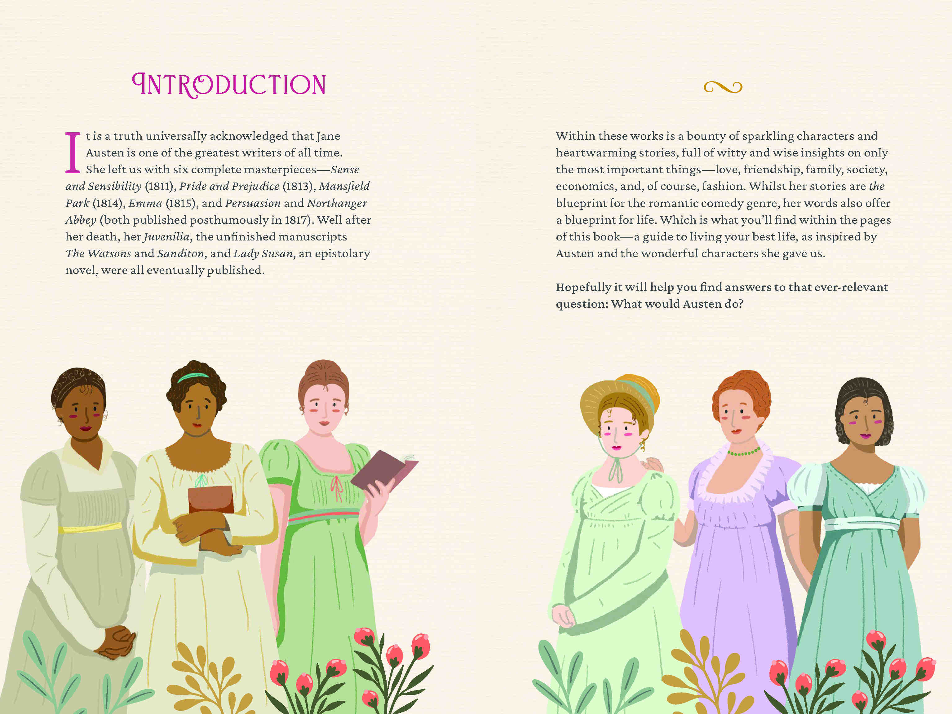 It is a truth universally acknowledged that most of us could use some guidance. Whether readers are looking to marry a man with several carriages to his name, recovering from an illness caused by wet stockings, or unsure what color ribbon is the best match for an outfit, Jane Austen’s wisdom is here to guide them through any problem.