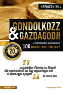 A Gondolkozz és gazdagodj! a századunkban írt bármely más könyvnél több embert ösztönzött arra, hogy vagyonra tegyen szert és sikeres legyen a pályáján. W. Clement Stone Mi az, ami lehetővé teszi, hogy az egyik ember töretlenül előrejusson, alkosson, gyarapodjék és megtalálja a boldogságát - míg a másik egy-két próbálkozás után megfeneklik, és semmire sem viszi? Mi az, ami lehetővé teszi, hogy az egyik ember eredményesen fejlessze emberi kapcsolatait, növelje befolyását - míg a másik képtelen erre? Mi az, ami az egyik ember számára lehetővé teszi, hogy álmaihoz utat találjon a problémák és akadályok dzsungelén át is - míg a másik vak elszántsággal küzd, és nem jut semmire? Sok évvel ezelőtt a világ egyik leggazdagabb embere, Andrew Carnegie vendégül látta e könyv szerzőjét. Az akkor alig húszéves Hill ott hallott először a Titokról. Az eredmény: az idős iparmágnás megbízza őt, tanulmányozza, hogyan működik másoknál a Titok, tapasztalatait összegezve dolgozza ki a siker filozófiáját, fejlesszen ki egy Mestermódszert, és hasznosításra nyújtsa át a világnak. Így született meg ez a könyv, amely a mai napig a legrészletesebb és legátfogóbb kézikönyv a pénz területén. A Gondolkozz és gazdagodj! első megjelenése óta egyedül csak Amerikában 42 kiadást ért meg, és a példányok szinte még ki sem kerültek a nyomdából, máris elkapkodták őket. Világszerte a kiemelkedő üzletemberek, alkotók, vállalkozók, sikeres emberek több nemzedéke nevelkedett rajta. Ez a ma már klasszikus mű ugyanolyan pozitív hatást gyakorolt a kezdeményező, vállalkozó magatartás elterjedésére hazánkban, mint eddig mindenütt a világon.