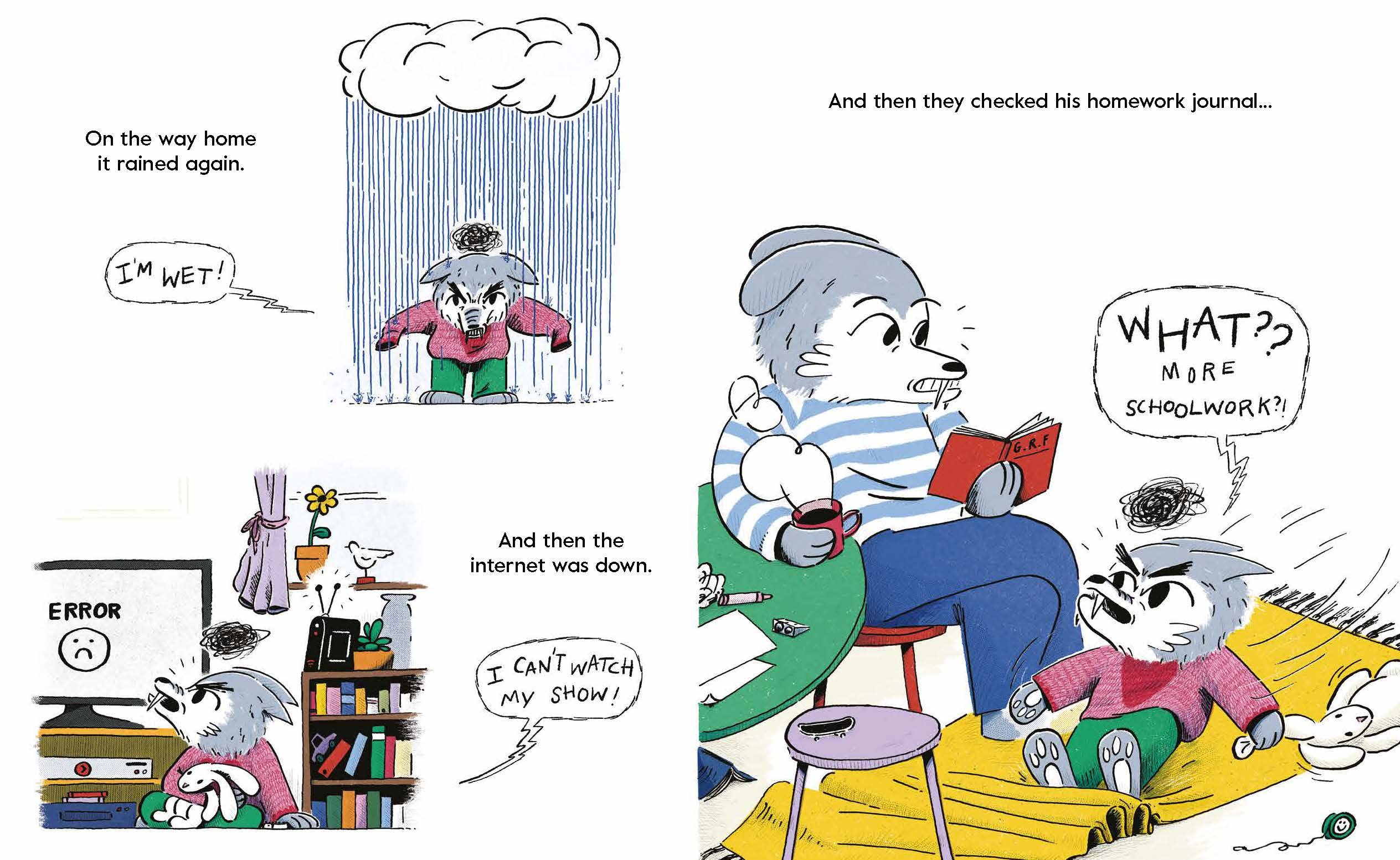 NO WAY. On the way home it rains again, there's homework to finish and the internet is down. Gory Rory has reached the end of his tether - it really has been the WORST DAY EVER. But sometimes... just sometimes... when you really really need them... kisses can make it all better.
