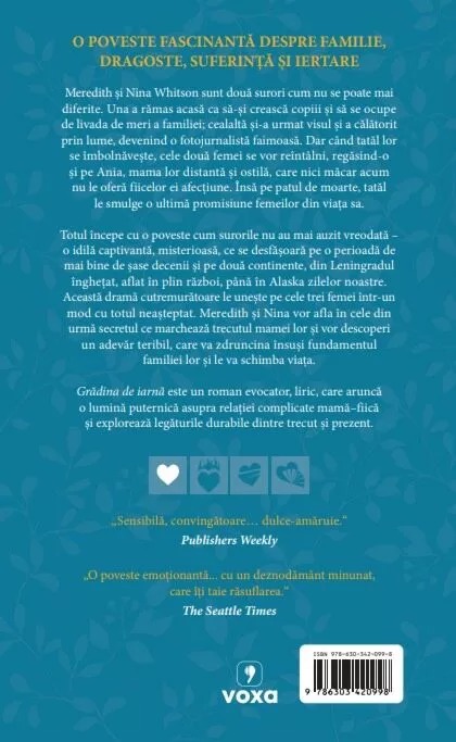 Grădina de iarnă este un roman evocator, liric, care aruncă o lumină puternică asupra relației complicate mamă–fiică și explorează legăturile durabile dintre trecut și prezent.