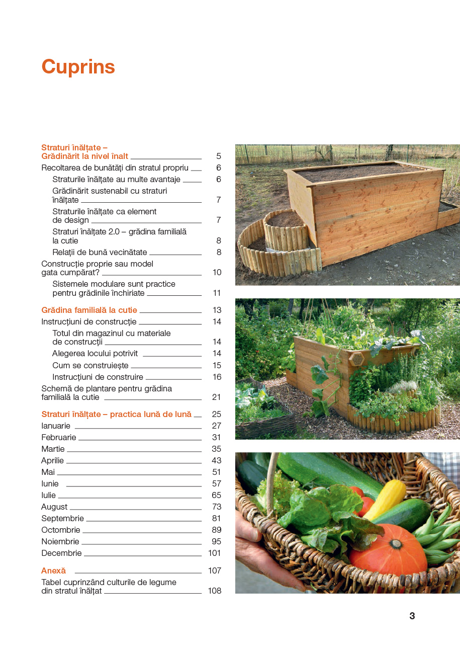 în curtea din spatele casei sau chiar și pe balcon. Dar care sunt lucrările şi când trebuie ele făcute pentru a vă putea bucura de roadele stratului dumneavoastră înălțat pe tot timpul anului? Urmați pur și simplu sfaturile autoarei care a prezentat, lună de lună, totalitatea lucrărilor care trebuie efectuate în stratul înălțat.