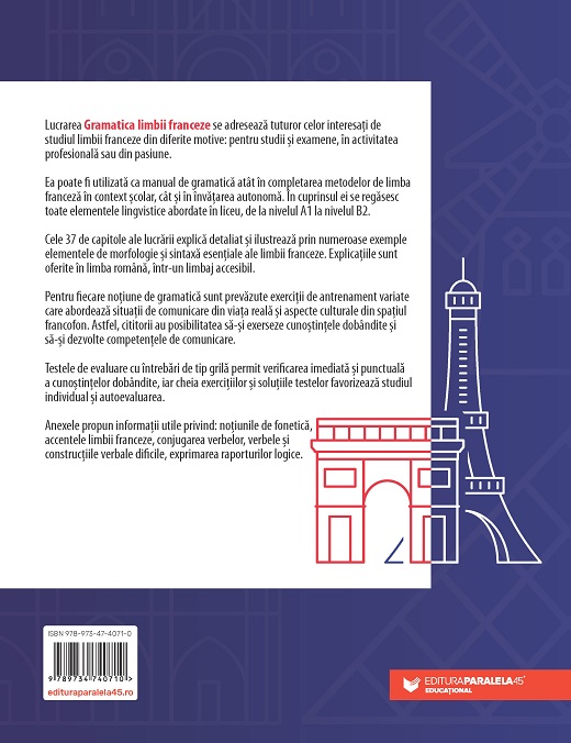 Lucrarea Gramatica limbii franceze se adresează tuturor celor interesați de studiul limbii franceze din diferite motive: pentru studii și examene, în activitatea profesională sau din pasiune.