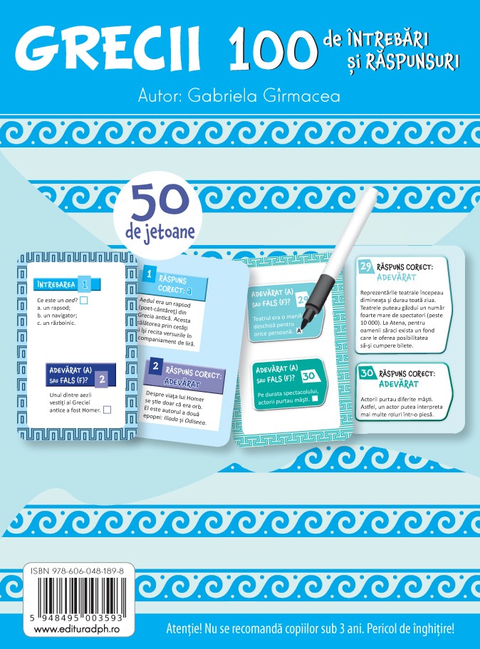 Conține o cariocă lavabilă pentru a răspunde la întrebări și a vă verifica la urmă.