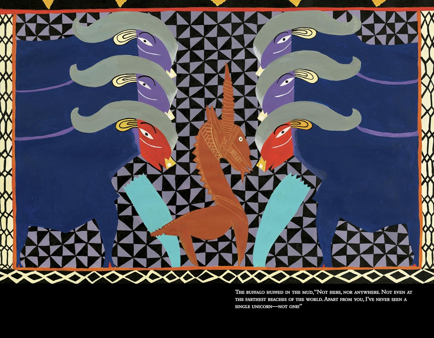 A unicorn searches for others just like him in this vibrant and shapeshifting tale by Batchelder-Honor author and illustrator, Roger Mello