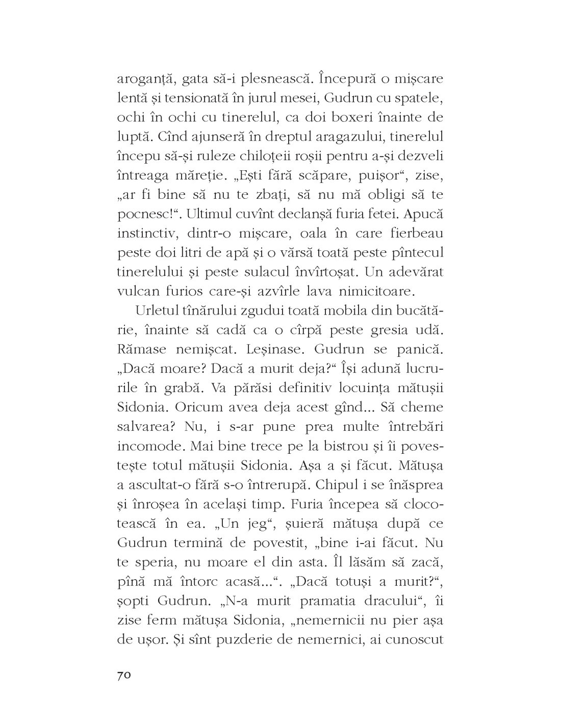 Voiam să spun că este un personaj fabulos de bine construit, dar ar fi fost o greșeală. Gudrun nu este construită, nu este făcută, ea este născută, ca un fel de simbioză între Atena și Afrodita, din căpățâna divinului său tată, aici un scriitor, după vorbă, după port, numit Radu Țuculescu... Ar fi foarte plăcut inimii mele cititoare ca Radu să treacă de marginile trilogiei!”