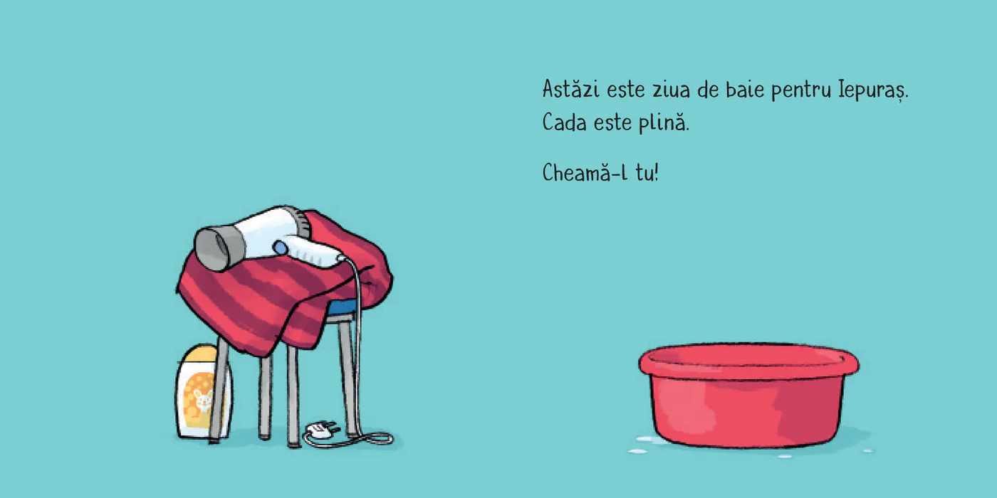 Copiii îl ajută pe Iepuraș la ora băiței, transformând rutina zilnică într-un moment plin de veselie.