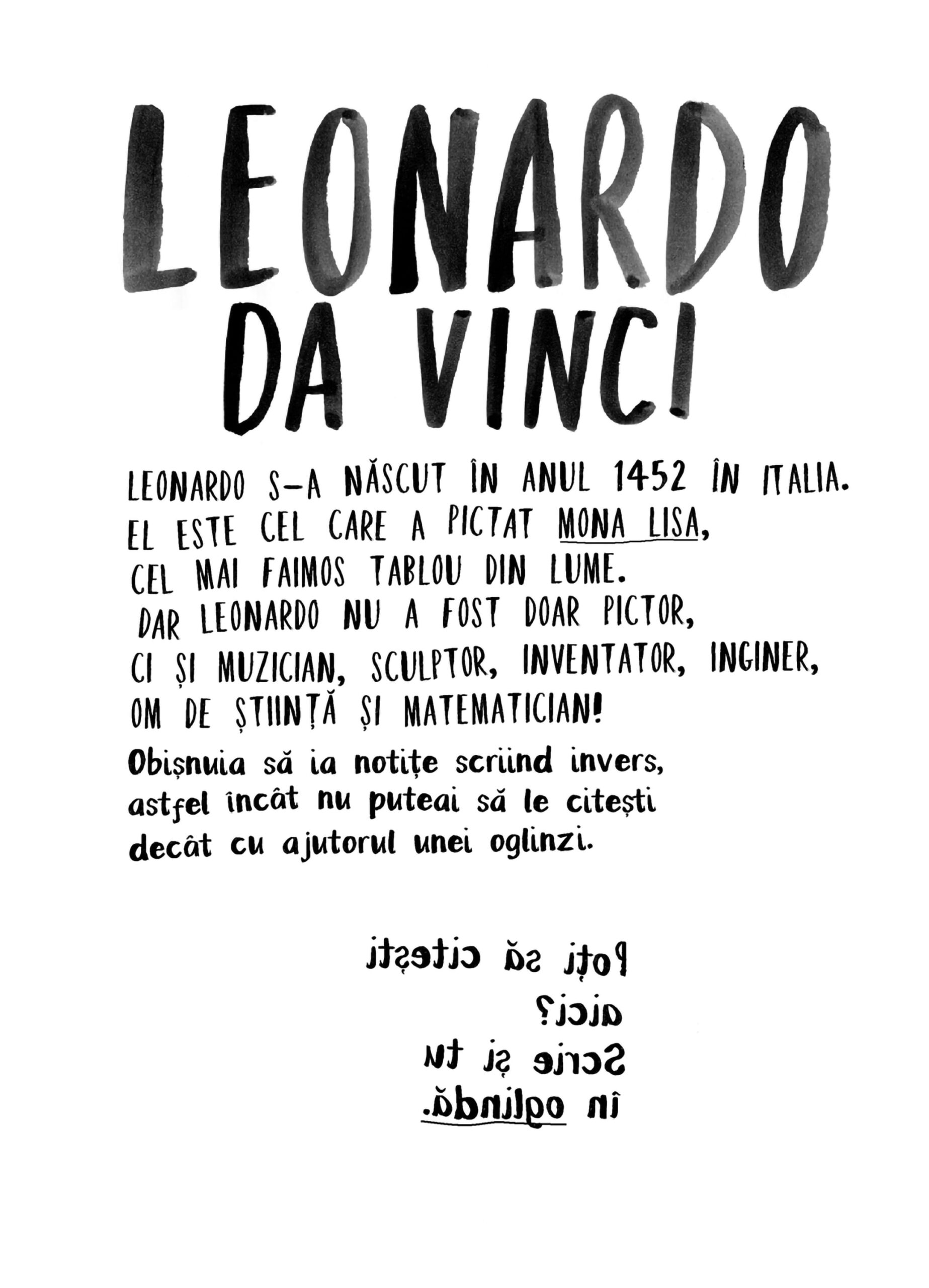 Copiii pot adăuga un zâmbet pe chipul Mona Lisei. Își pot pregăti propriul tablou în stilul lui Jackson Pollock, folosind doar o cutie, o biluță, vopsea și hârtie. Vor învăța cum să deseneze o pasăre pas cu pas – sau o bicicletă. Vor descoperi că arta este o parte importantă din felul în care ne exprimăm pe noi înșine.