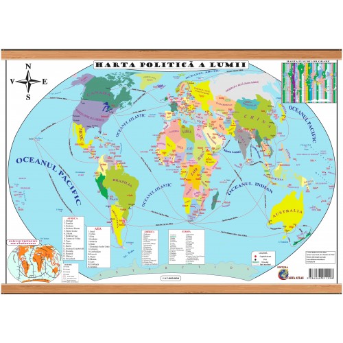 Harta de perete a lumii - Harta Fizica - Harta Politica