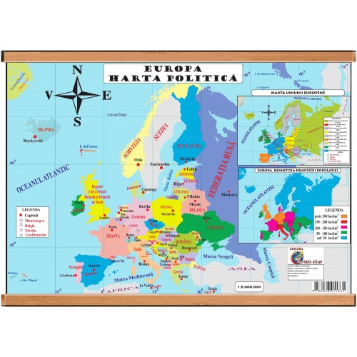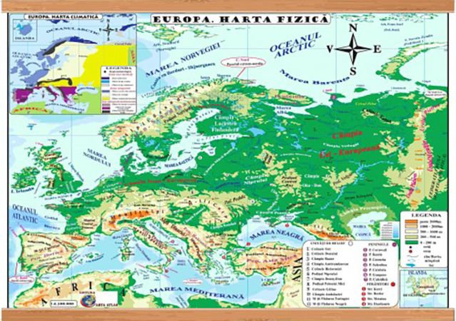 Europa. Harta fizica.Europa. Harta politicaHarta are formatul 500x700 mmPlastifiată față/verso Cu agățătoare de perete