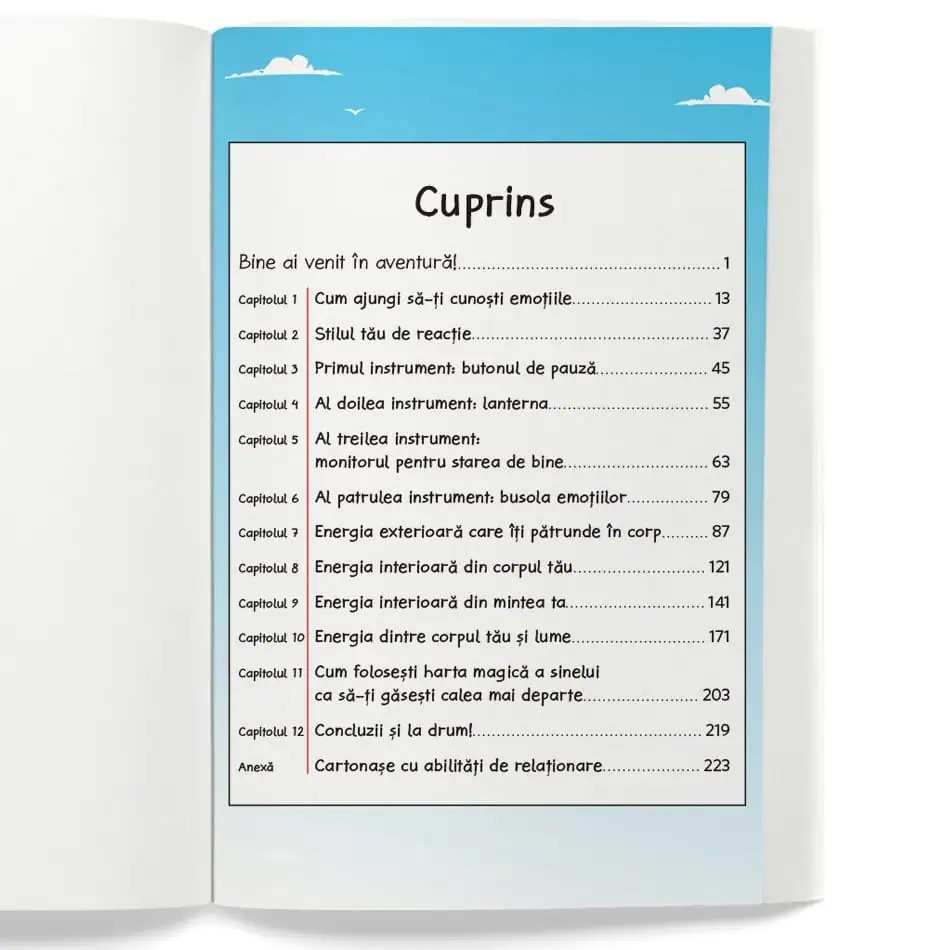 Astfel, copiii cu vârsta cuprinsă între 8 și 12 ani vor ști să lucreze cu 4 instrumente importante: butonul de pauză, lanterna, monitorul pentru starea de bine și busola emoțiilor. Mai mult decât atât, vor deprinde moduri de a-și găsi calea mai departe, spre încrederea în sine.