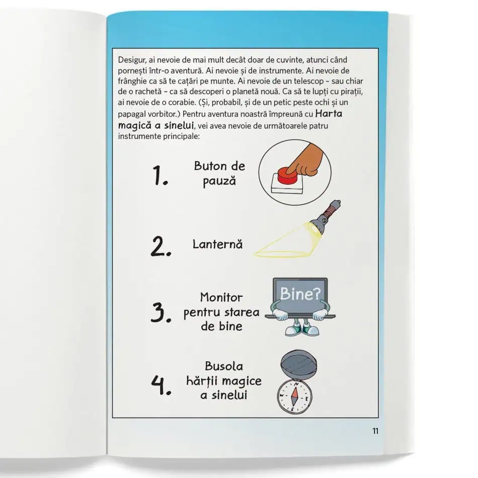 Cu „Harta magică a sinelui“ alături, preadolescenții pot trece de la „E prea mult pentru mine“ la „Mă descurc cu asta“. Vor învăța să-și identifice pragul de suportabilitate, dincolo de care totul pare copleșitor, și să aibă grijă de ei, să-și împlinească nevoile cu ajutorul celor dragi, pentru ca ce pare „prea greu“ să devină „greu, dar gestionabil“.