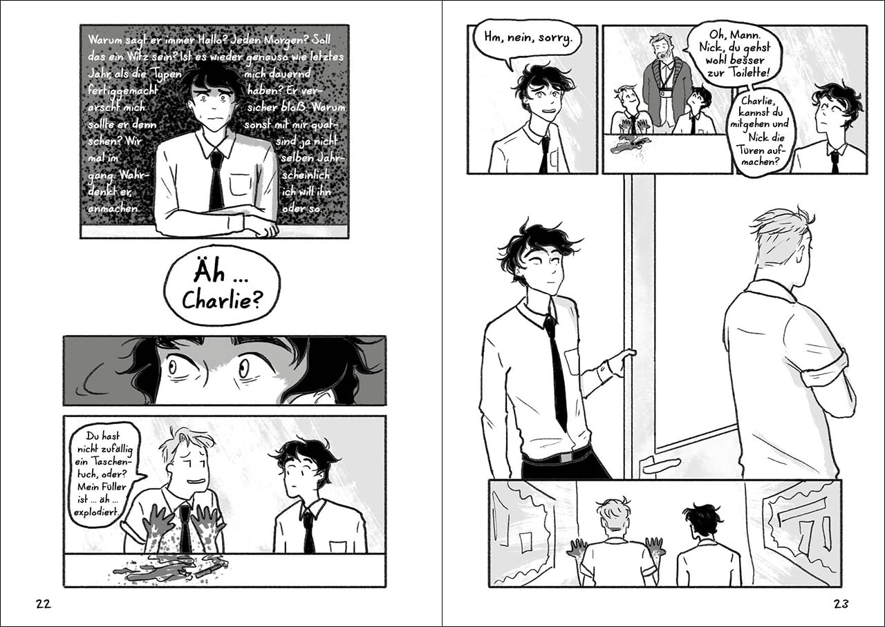 Dass Charlie schwul ist, weiß die ganze Schule. Dagegen ist Nick, der Star der Rugbymannschaft, so straight wie eine Goalline. Glaubt Charlie. Aber dann entwickelt sich eine intensive Freundschaft zwischen den beiden unterschiedlichen Jungen. Charlie weiß sofort, dass er in Nick verknallt ist. Nick braucht ein bisschen länger, bis ihm klar wird, dass er Jungen genauso heiß findet wie Mädchen – besonders Charlie.