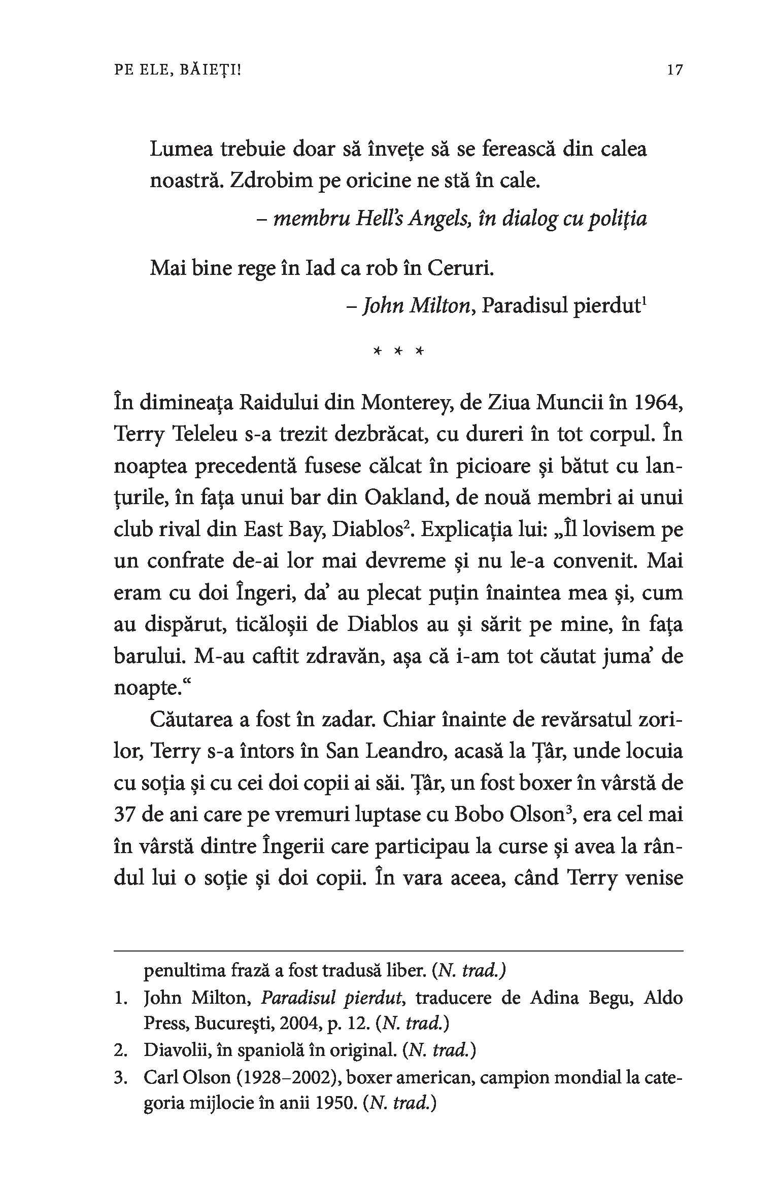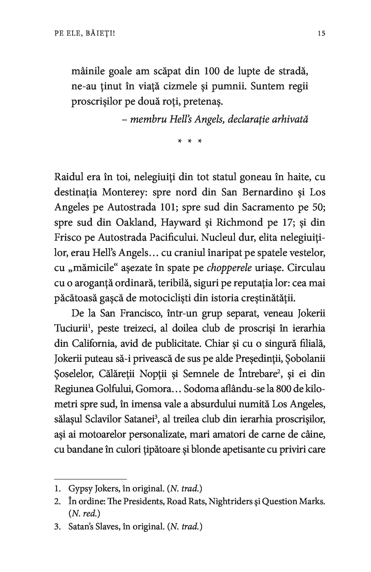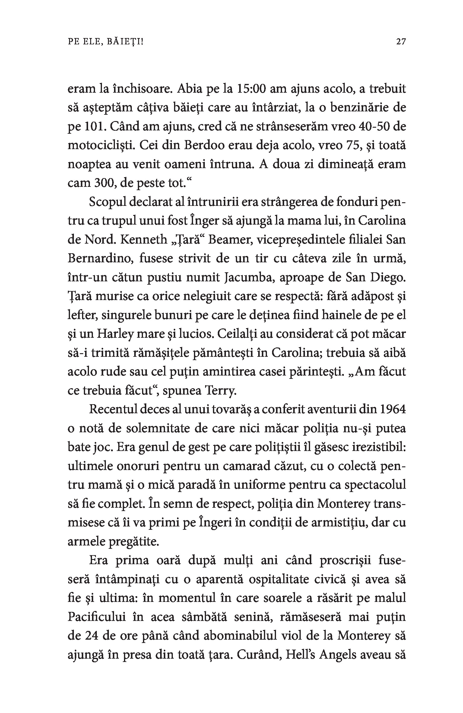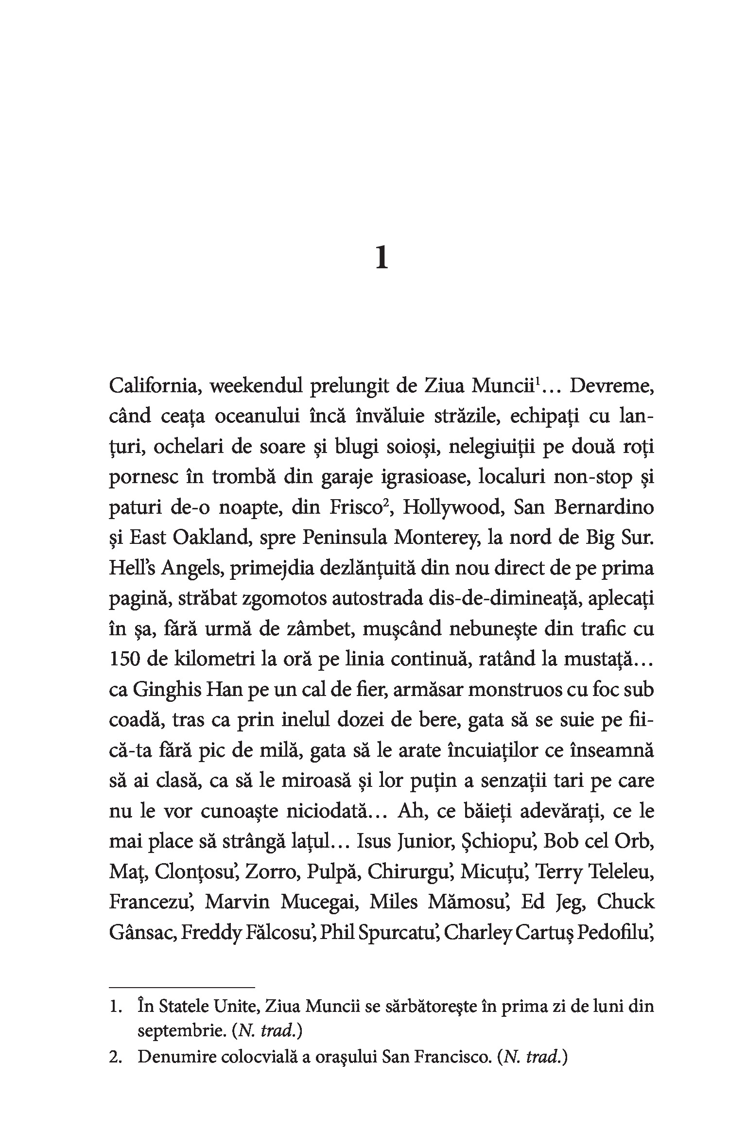 „Atenție, nelegiuiții pe două roți nu mai sunt la porțile orașului! Sunt chiar printre noi!“ Așa ar fi sunat titlul vreunui ziar local din America anilor 1960 după ce Hell’s Angels ar fi dat năvală în oraș, doar ca să se distreze în stilul lor caracteristic: motoare, raiduri, femei, droguri și bere.