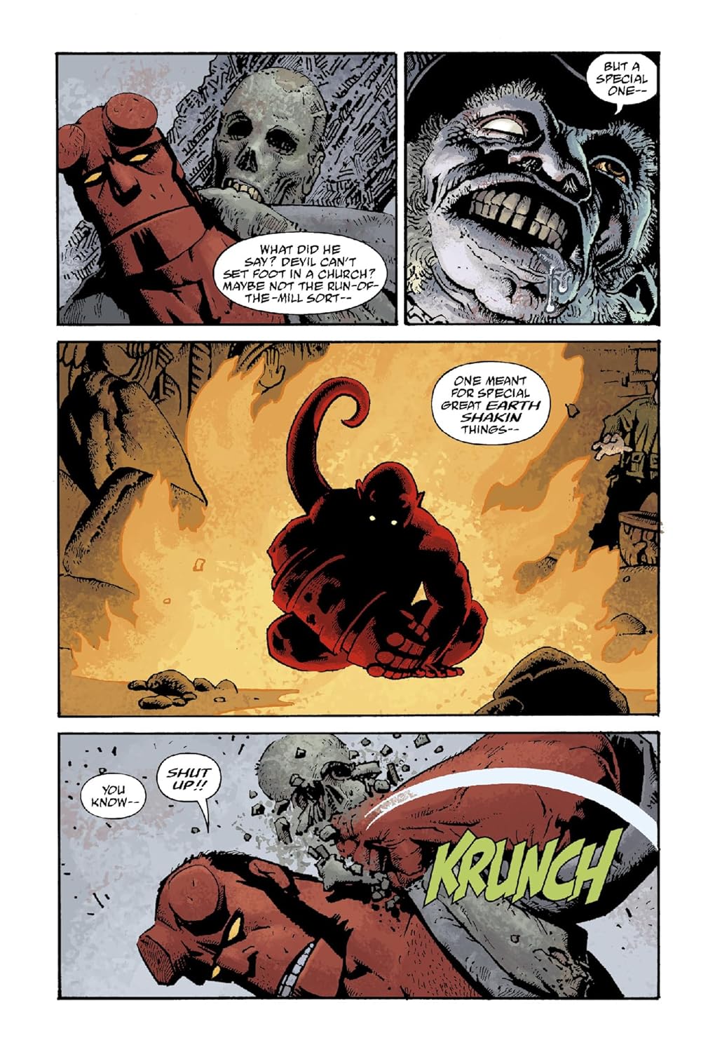 Oversize 8' X 12' format includes a cloth spine and foil cover treatment. Collects: Hellboy: Being Human one-shot, Hellboy in Mexico one-shot, Hellboy: House of the Living Dead OGN, Hellboy: The Bride of Hell one-shot, Hellboy: Makoma #1-#2, Hellboy: Double Feature of Evil one-shot, Hellboy: The Mirror short story, and Hellboy: The Crooked Man #1-#3.
