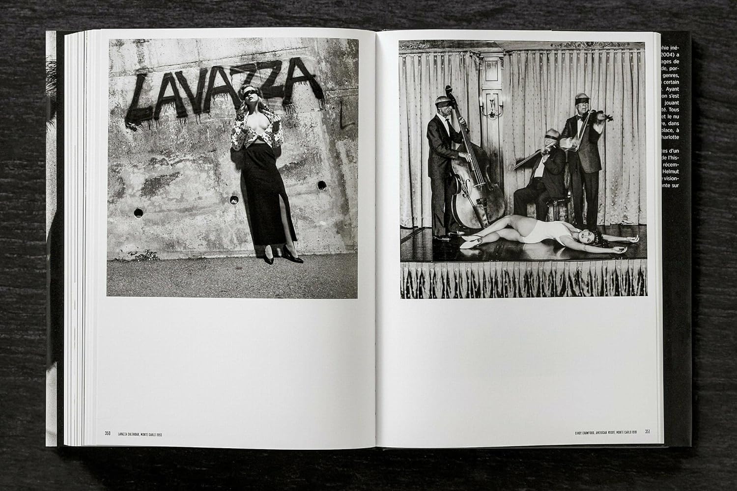 During the 1990s, Newton shot for the German, American, Italian, French, and Russian editions of Vogue, primarily in and around Monte Carlo where he was living from 1981 onwards. Transforming locations like his own garage into starkly contrasting or particularly minimalist theatrical stages, Newton would often portray the eccentric lives of the beautiful and rich, full of eroticism and elegance, in unconventional scenarios. He made use of and simultaneously questioned visual cliches, at times tinged with self-irony or mockery, but always full of empathy.