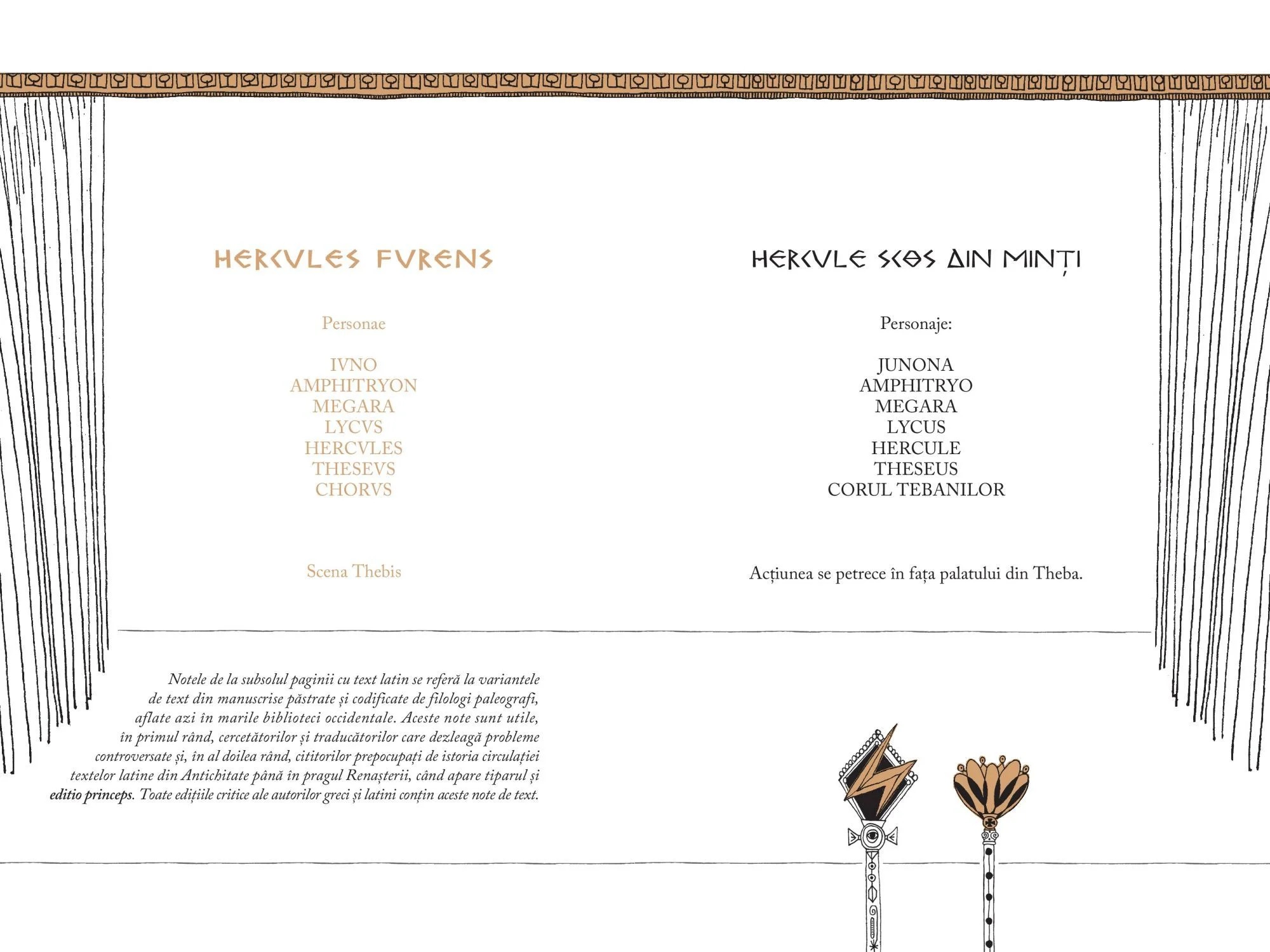 Tragedia Hercule scos din minți este inspirată de piesa cu același titlu scrisă de Euripide. Mitul lui Hercules fusese reflectat în creații dramatice, la greci, de Sofocle iar la romani de Naevius. Peste vreme, marii dramaturgi europeni, de la Shakespeare la Racine au valorificat scene, motive și sentențe din tragedia lui Seneca. Ediția 2019 a editurii Seneca este bilingvă în traducerea profesorului Traian Diaconescu, ilustrată de Andrei Măceșanu.