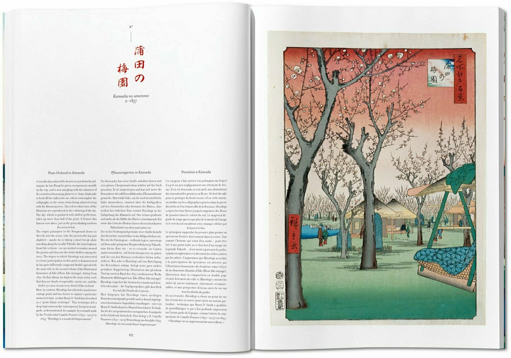 This reprint, bound in the traditional Japanese fashion, is made from one of the finest complete original sets of woodblock prints belonging to the Ota Memorial Museum of Art in Tokyo. It pairs each of the 120 illustrations with a description, allowing readers to immerse themselves in these beautiful, vibrant vistas that became paradigms of Japonisme and inspired Impressionist, Post-Impressionist and Art Nouveau artists alike, from Vincent van Gogh to James McNeill Whistler.