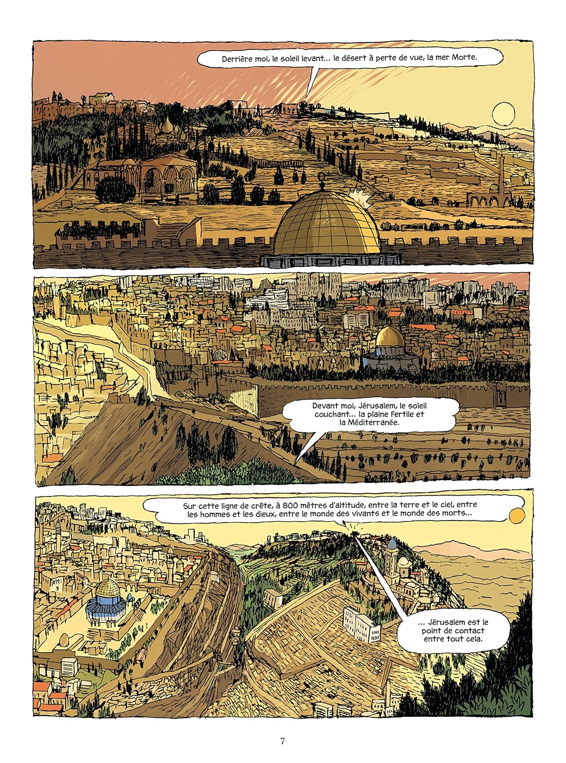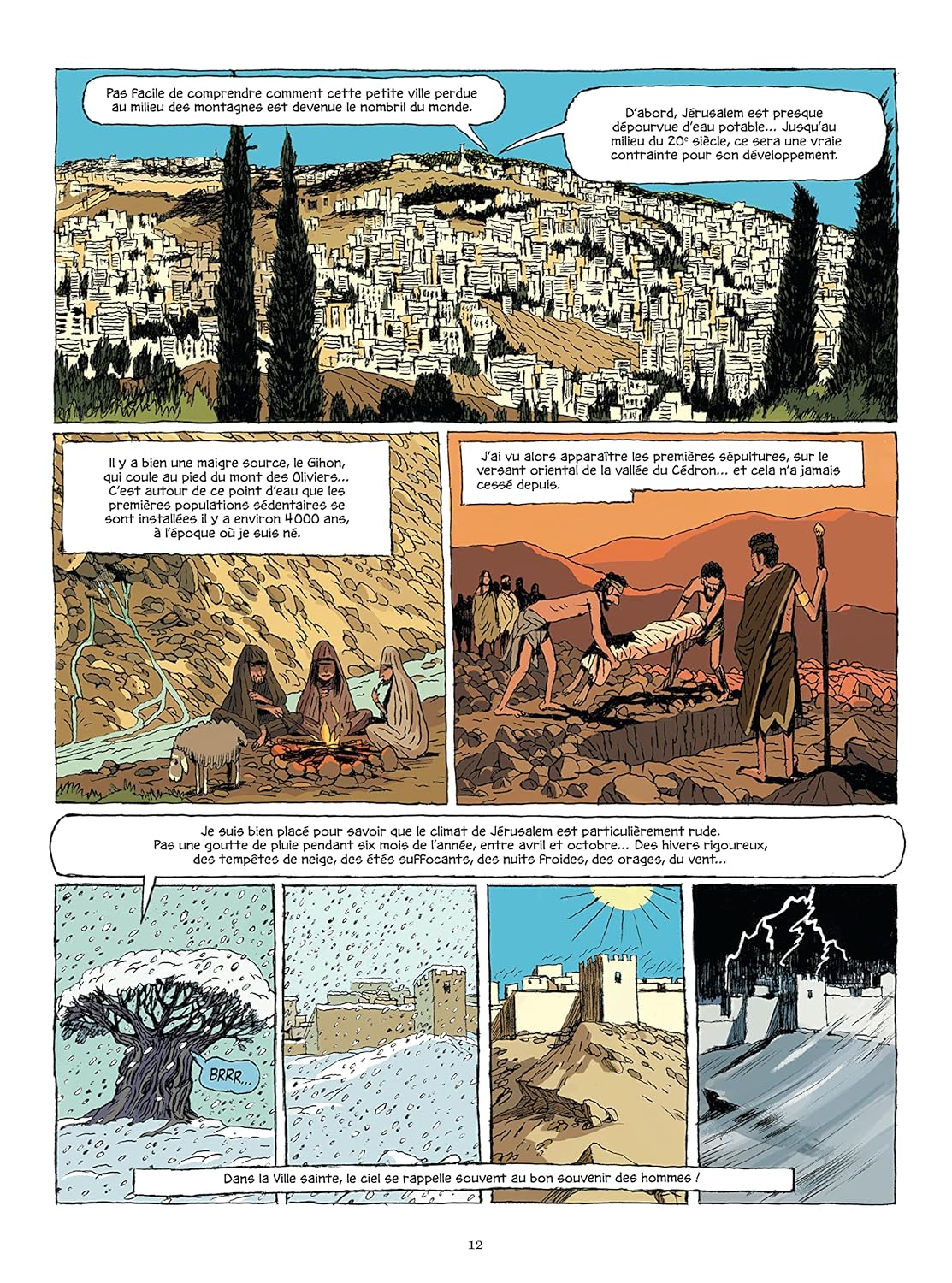 Il y a 4000 ans, Jérusalem était une petite bourgade isolée, perchée sur une ligne de crête entre la Méditerranée et le désert. Aujourd'hui, c'est une agglomération de presque un million d'habitants, qui focalise les regards et attire les visiteurs du monde entier. Entre-temps, les monothéismes y ont été inventés, les plus grands conquérants s'en sont emparés, les plus grands empires s'y sont affrontés. Tour à tour égyptienne, perse, juive, grecque, romaine, byzantine, arabe, croisée, mamelouke, ottomane, anglaise, jordanienne, israélienne et palestinienne, Jérusalem est au coeur des intérêts et des passions du monde. Berceau du judaïsme, du christianisme et de l'islam, elle est aujourd'hui une capitale spirituelle pour plus de la moitié de l'humanité. En 10 chapitres, acteurs et témoins, célèbres au anonymes, toutes celles et tous ceux qui ont arpenté Jérusalem au fil des siècles racontent ce mille-feuille d'influences composites. Rien n'est inventé : scènes et dialogues proviennent de plus de 200 sources publiées et d'archives inédites, pour donner chair à ce récit choral.