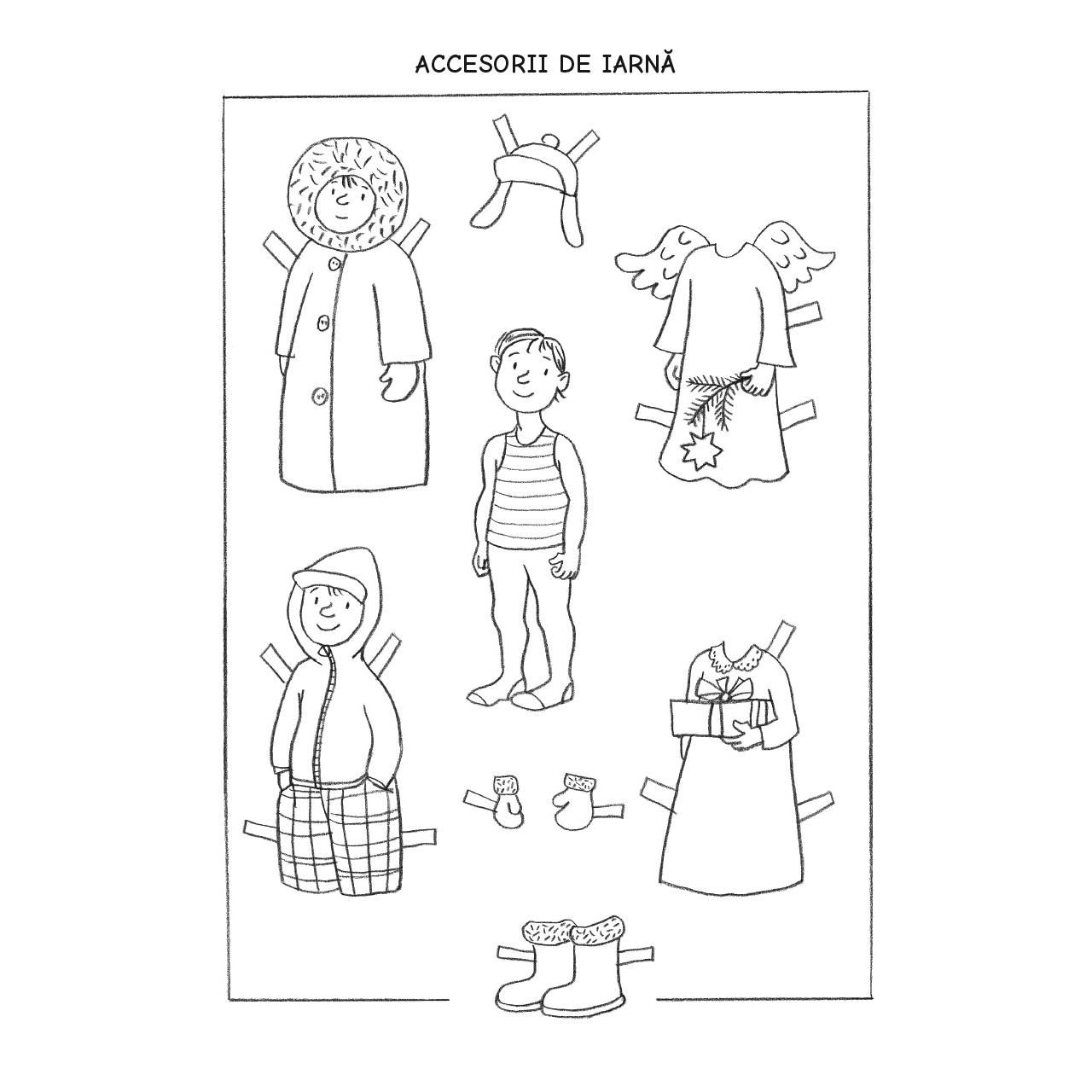 • o păpușă din hârtie cu haine potrivite pentru a fi colorate și
