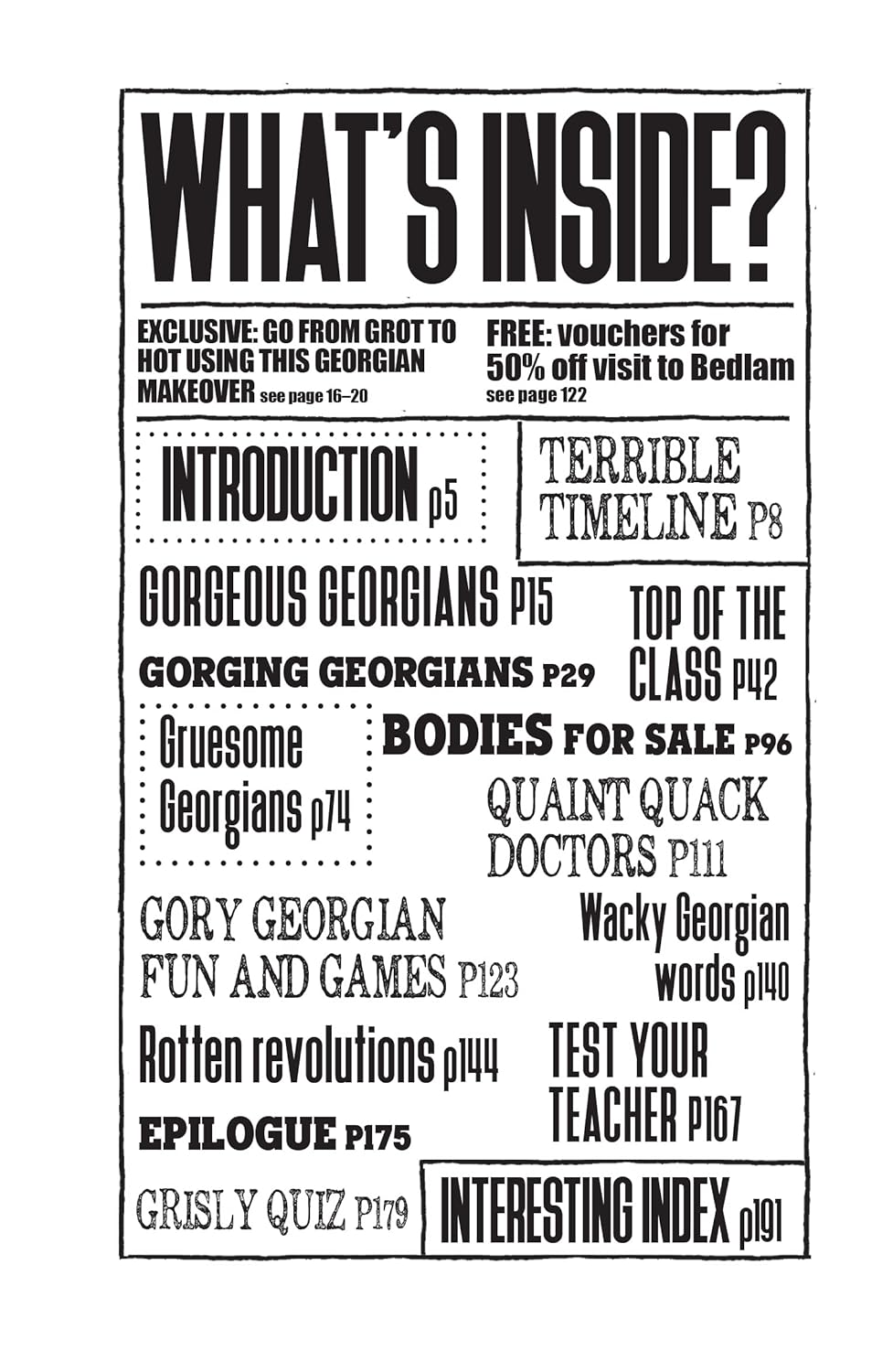 The master of making history fun, Terry Deary, turns his attention to the Gorgeous Georgians. From what the Georgians used squashed fish eyes for to the effects of their toxic makeup. It's all in Horrible Histories: Gorgeous Georgians: