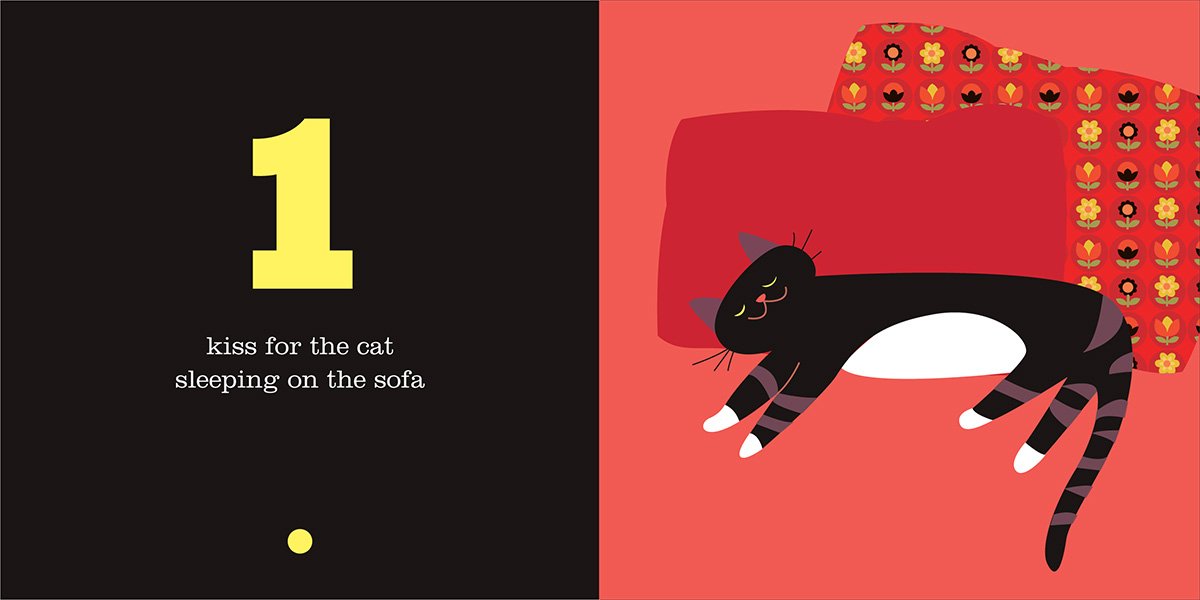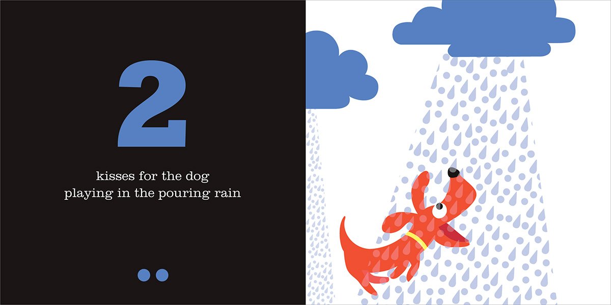 How Many Kisses? begins by inviting the reader to give one kiss to the cat, two kisses to the dogs, three kisses to the flowers and so on, following a classic counting technique until readers reach the number ten. The book then takes wild jumps up to seventeen, sixty-four, 823, and finally `millions', prompting a riotous explosion of kisses from the reader. By encouraging the child to interact physically with the book, each reading becomes like a game that celebrates all the things in a child's life that they love, while familiarizing them with numbers and counting.