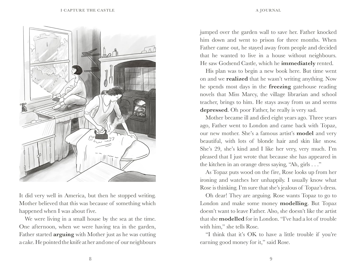 I Capture the Castle, a Level 4 Reader, is A2+ in the CEFR framework. The text is made up of sentences with up to three clauses, introducing more complex uses of present perfect simple, passives, phrasal verbs and simple relative clauses. It is well supported by illustrations, which appear regularly.