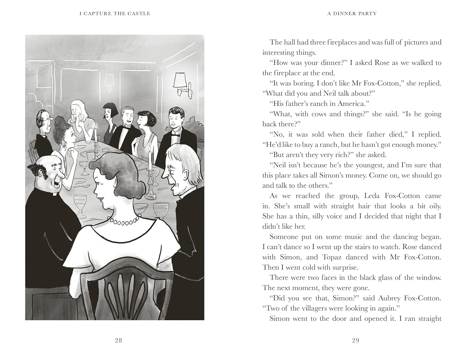 The poor Mortmain family move to an old castle. Mr Mortmain's daughter Rose wants a rich husband. Her sister, Cassandra, wants to be a writer like her father. But when the Mortmains meet their two rich neighbours, Simon and Neil Cotton, both Rose and Cassandra have their lives changed forever.