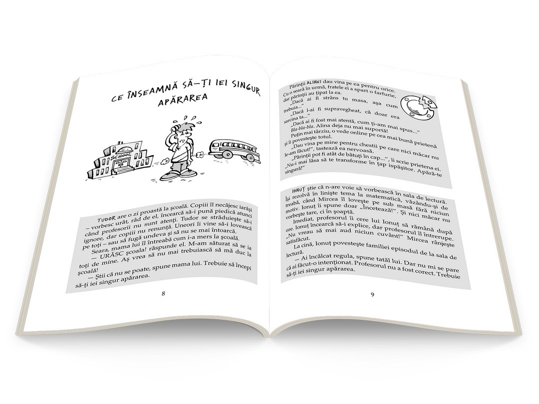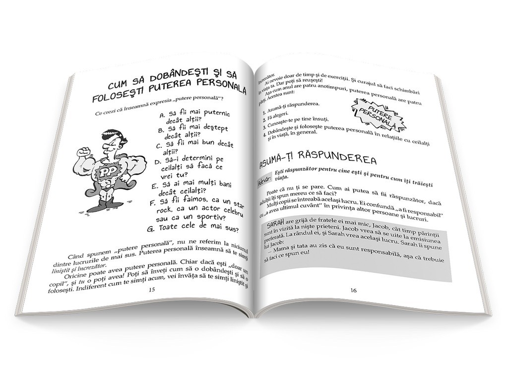 Dacă îi ajutăm pe copii să-și dezvolte stima de sine, nu-i vom învăța să-i subaprecieze pe ceilalți și, cu siguranță, nici să fie disprețuitori. îi vom învăța să fie mândri, să aibă o părere bună despre ei înșiși când fac ceea ce trebuie (și să-și asume răspunderea atunci când greșesc), să-și aprecieze realizările (atât concrete, cât și abstracte), să știe ce pot tolera (și ce nu) și să se străduiască să fie cât mai buni din toate punctele de vedere - susțin autorii. Cartea face parte din colecția de psihologie aplicata „Ajută-te singur” și este dedicată copiilor de 9+ ani.