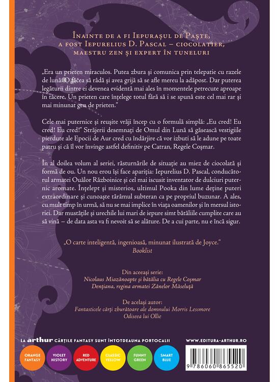 În al doilea volum al seriei, răsturnările de situaţie au miez de ciocolată și formă de ou. Un nou erou îşi face apariția: lepurelius D. Pascal, conducătorul armatei Ouălor Războinice şi cel mai iscusit inventator de dulciuri puternic aromate. Înţelept şi misterios, ultimul Pooka din lume deţine puteri extraordinare şi cunoaşte tărâmul subteran ca pe propriul buzunar. A ales, cu mult timp în urmă, să nu se mai implice în viața oamenilor şi în mersul istoriei. Dar mustățile și urechile lui mari de iepure simt bătăliile cumplite care au să vină - de data asta va fi nevoit să se alăture. De a cui parte, nu e încă sigur.
