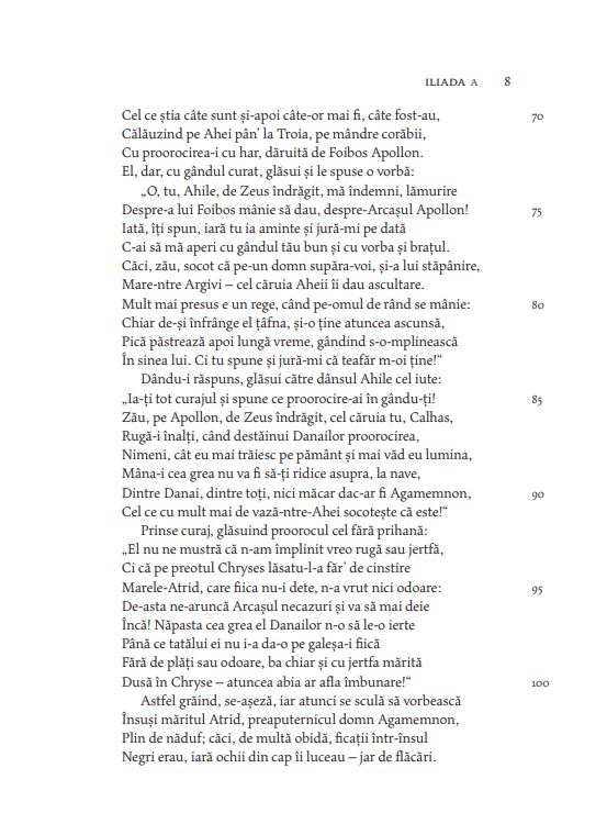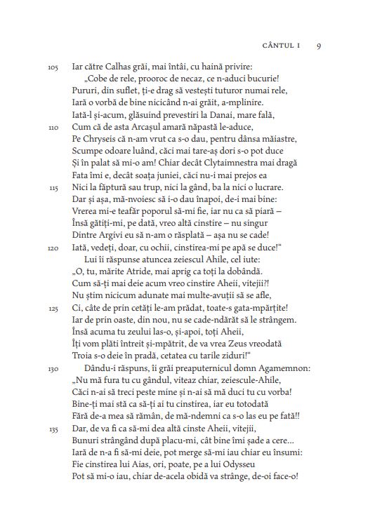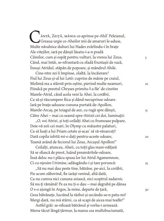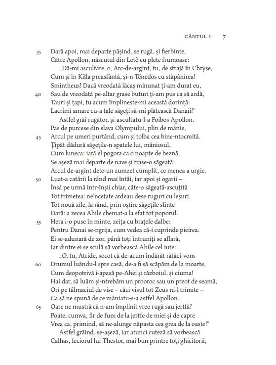 „Binevoitorul nostru cititor se va întreba, poate, cum de ne-am asumat curajul de a ne avânta într-o atât de temerară întreprindere, cum este aceea a unei noi traduceri a poemelor homerice, şi, mai cu seamă, a uneia dorite în hexametri. Vom mărturisi, prin urmare, deschis că am ajuns treptat să simţim această înclinare nu ca pe o îndrăzneală, ci ca pe o necesitate de neocolit: nimeni nu poate tăgădui faptul că orice lume civilizată, orice naţiune cultivată şi cu respect pentru sine are îndatorirea de a-şi regândi marii autori odată cu fiecare nouă generaţie şi de a-i traduce iarăşi, măcar tot la două generaţii, căutând să se apropie mereu mai mult de spiritul şi de expresia acestora.“ (Dan SLUŞANSCHI)