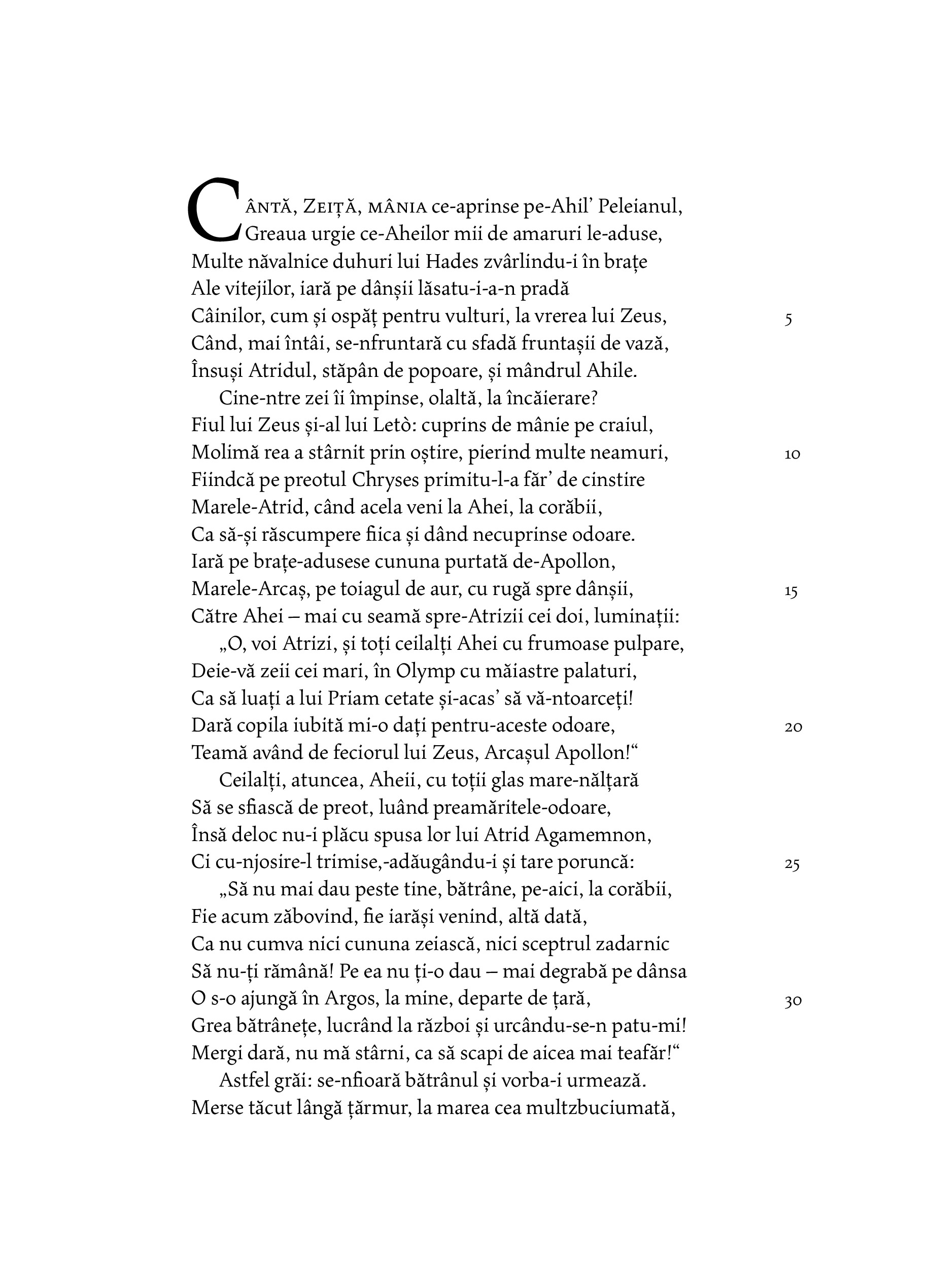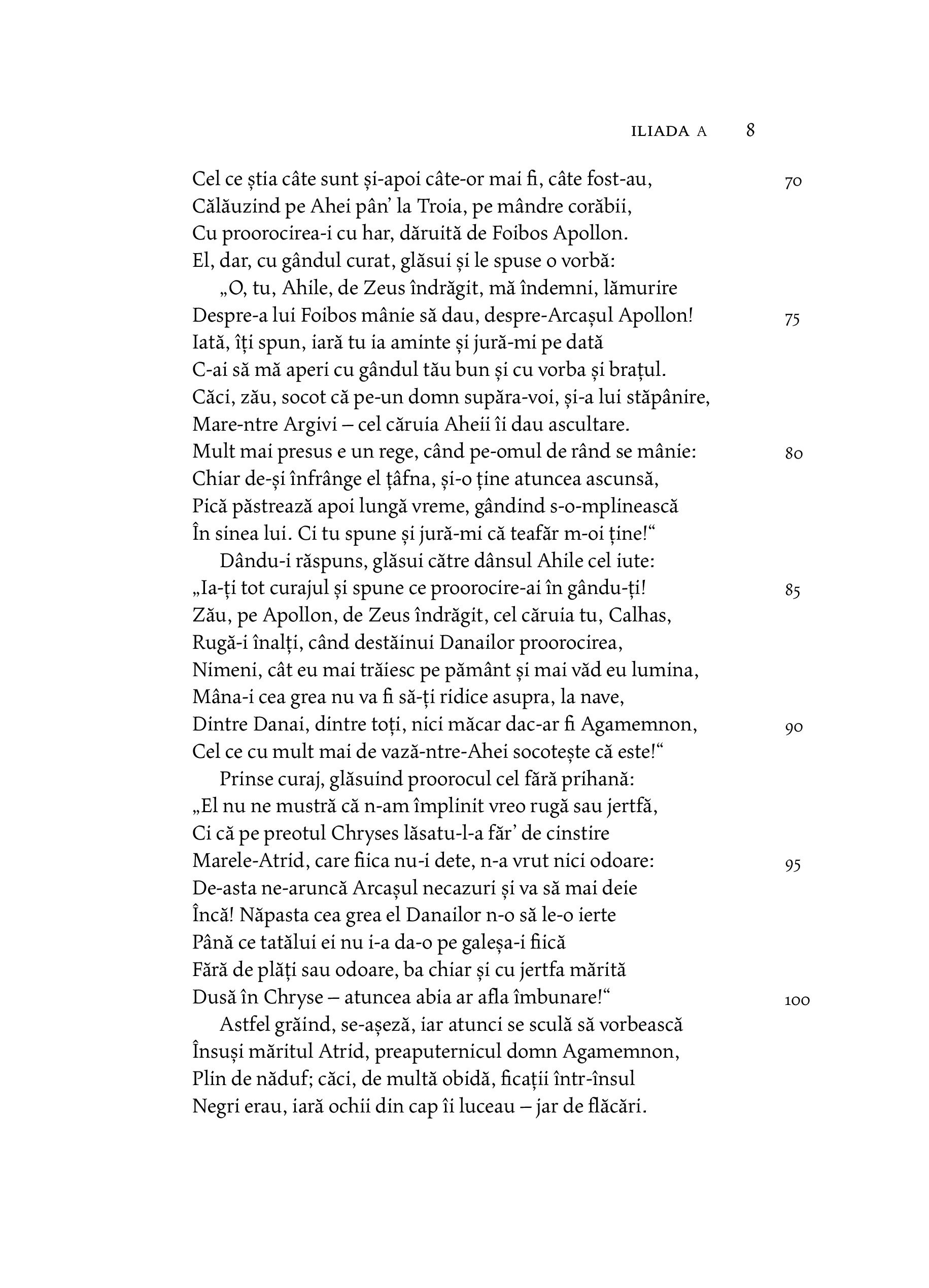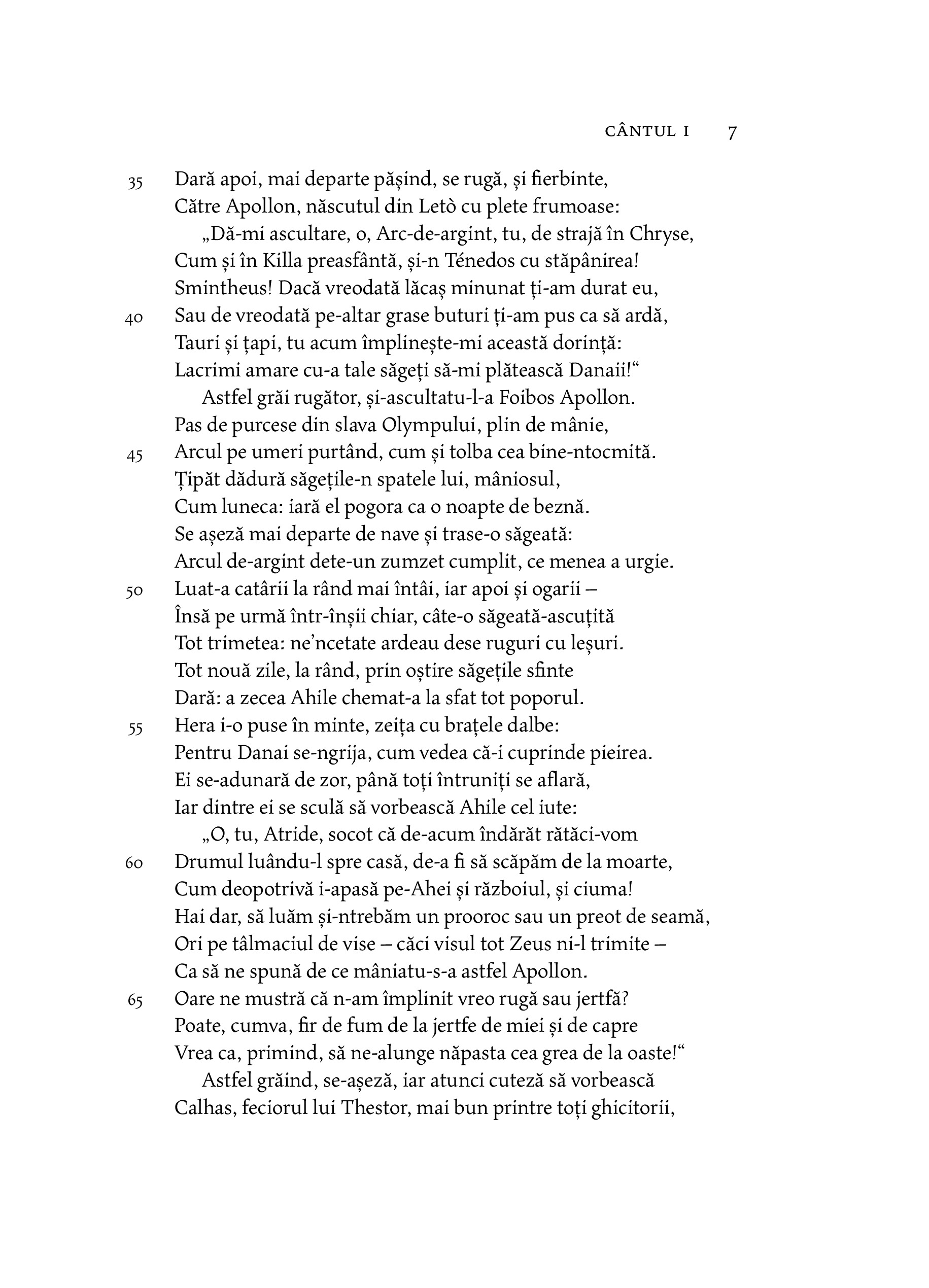 „Binevoitorul nostru cititor se va întreba, poate, cum de ne-am asumat curajul de a ne avânta într-o atât de temerară întreprindere, cum este aceea a unei noi traduceri a poemelor homerice, şi, mai cu seamă, a uneia dorite în hexametri. Vom mărturisi, prin urmare, deschis că am ajuns treptat să simţim această înclinare nu ca pe o îndrăzneală, ci ca pe o necesitate de neocolit: nimeni nu poate tăgădui faptul că orice lume civilizată, orice naţiune cultivată şi cu respect pentru sine are îndatorirea de a-şi regândi marii autori odată cu fiecare nouă generaţie şi de a-i traduce iarăşi, măcar tot la două generaţii, căutând să se apropie mereu mai mult de spiritul şi de expresia acestora.“ — DAN SLUŞANSCHI