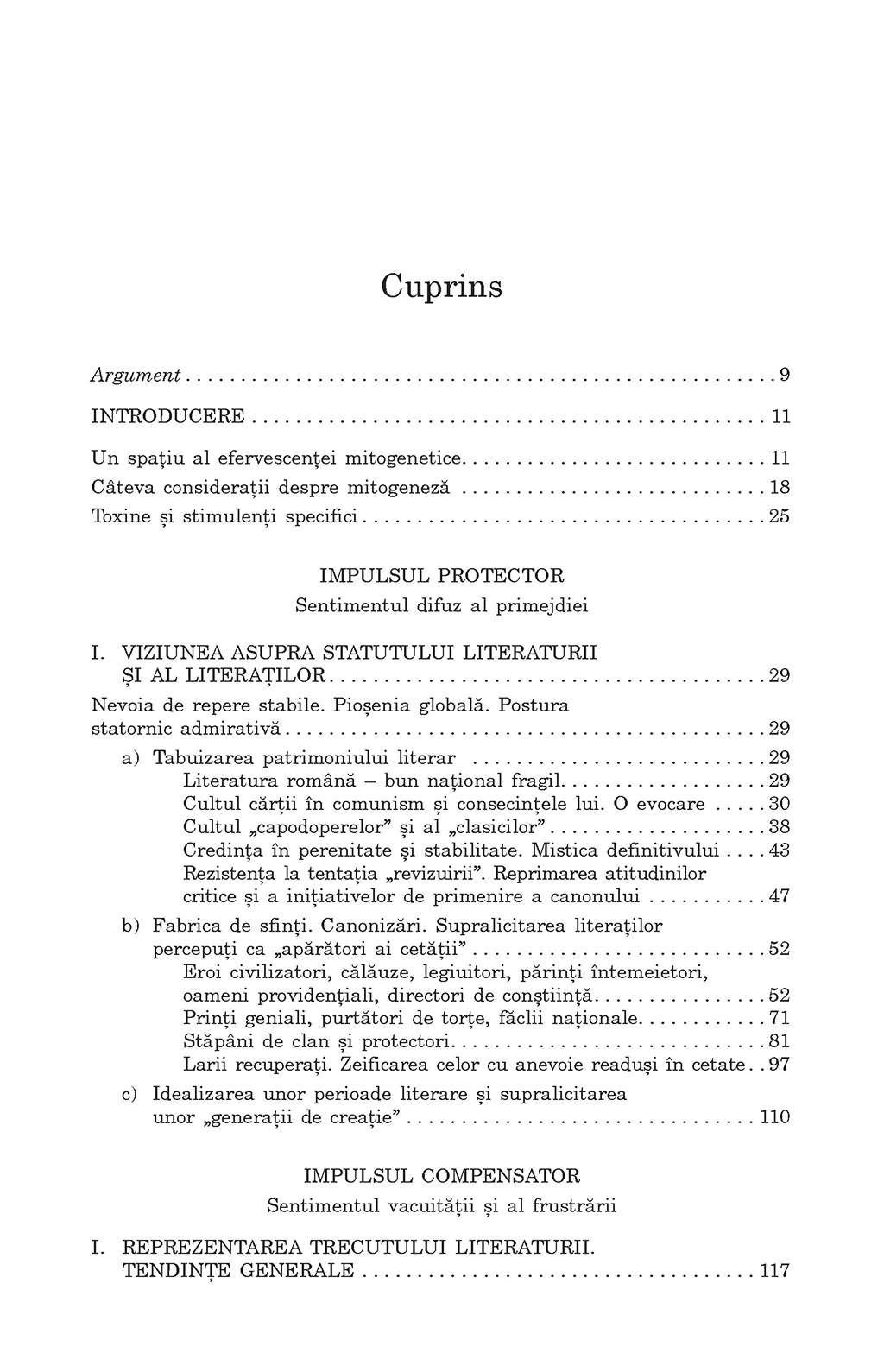 „Cartea lui Eugen Negrici este o analiză lucidă, intransigentă, convingătoare a miturilor care parazitează istoria literaturii române, dar e, deopotrivă, şi o profesiune de credinţă, rostită cu o sinceritate îngîndurată. Fiindcă, îndărătul enunţurilor tăioase şi al paginilor încărcate de un sarcasm amar, se mistuie o mare iubire rănită.” (Paul Cornea)