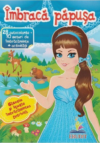 Gaseste si lipeste imbracamintea potrivita pentru fiecare papusa.In carte sunt 28 de autocolante care reprezinta 10 seturi de imbracaminte.