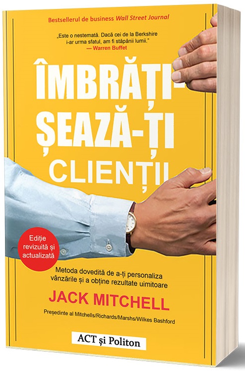 Îmbrățișează-ți clienții: Metoda dovedită de a-ți personaliza vânzările și a obține rezultate uimitoare / Hug Your Customers: The Proven Way to Personalize Sales and Achieve Astounding Results de Jack Mitchell este o lectură obligatorie pentru toți cei care au o afacere proprie sau pentru cei care lucrează în vânzări sau în relațiile cu clienții. Asta pentru că familia Mitchell – proprietara celebrelor magazine Mitchells - a creat un adevărat imperiu făcând un lucru extrem de simplu aparent, și anume, punând relația cu clienții pe primul loc în business-ul ei și perfecționându-și mereu modul în care i-a tratat și a menținut relația cu aceștia.