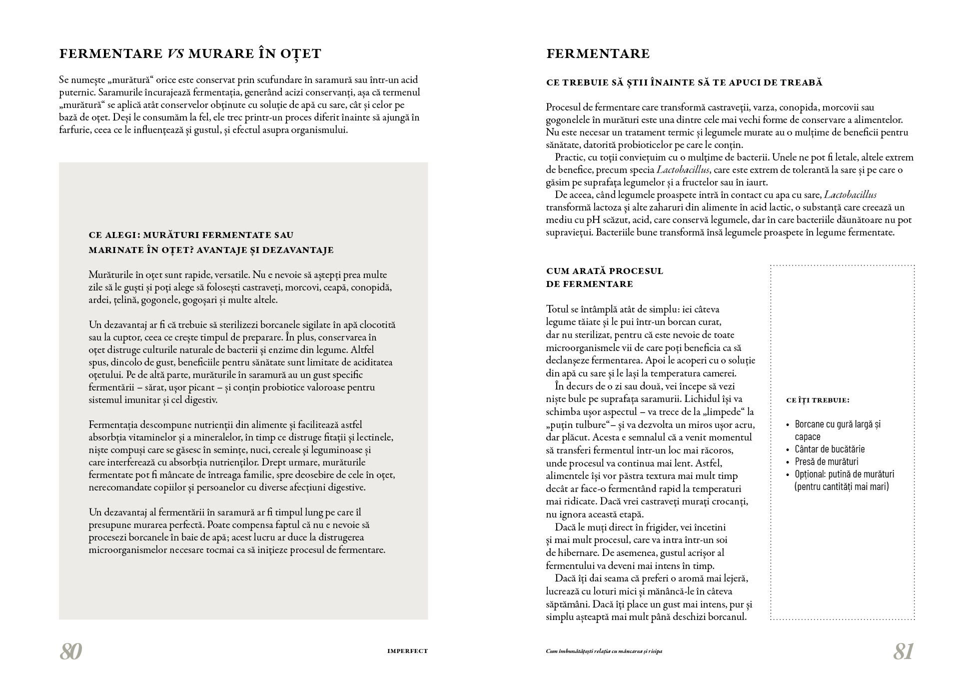 "Pe lângă utilitatea ei și explicațiile coerente despre tehnicile de conservare, această carte ne arată o strânsă legătură între bucătăria românească și combaterea risipei alimentare. Ne ajută să redescoperim informații, tehnici și mici secrete folosite de bunicii noștri, pe care le putem adapta într-un mod gustos în zilele noastre. Creativitatea este un alt simț pe care îl dezvoltă. O să te gândești de două ori înainte să arunci ceva ce poate înainte credeai că nu iți este de folos."