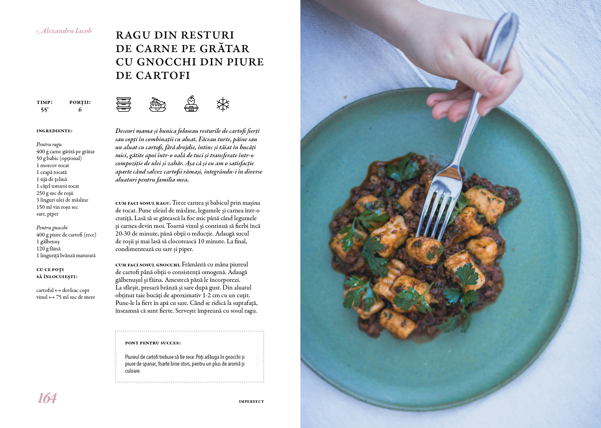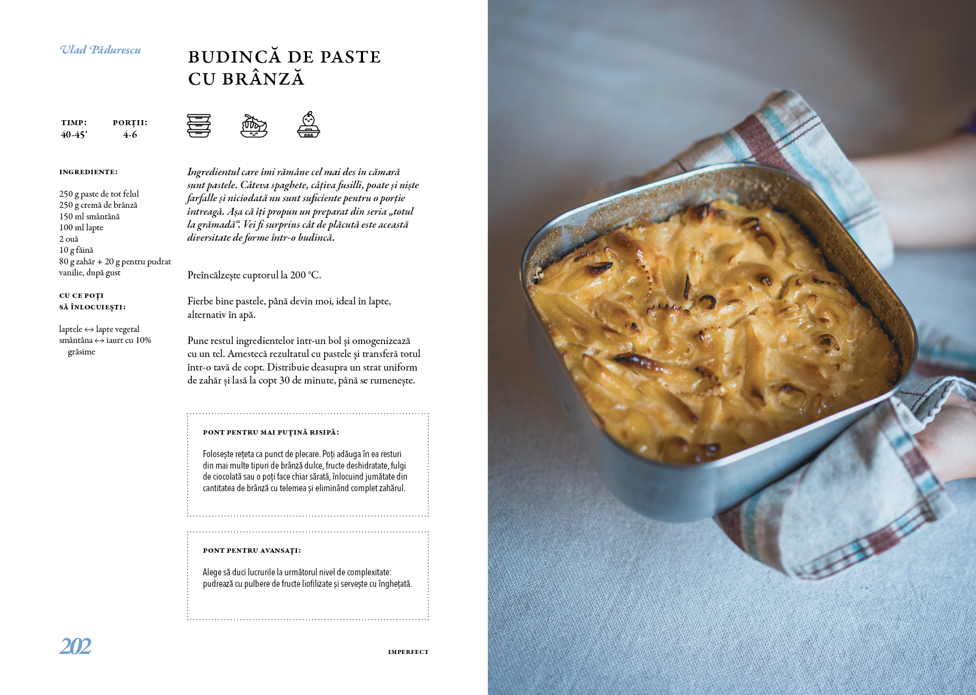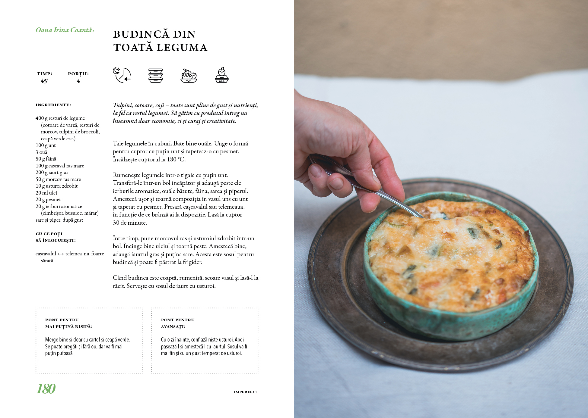 Prezintă variante de a transforma în preparate gustoase ingredientele cele mai predispuse să ajungă în coșul de gunoi. Sunt 45 de rețete de la mine și de la Gabriel, echipa Amuse Bouche, și de la opt dintre cei mai cunoscuți și apreciați chefi din România: Alex Petricean, Alexandru Iacob, Oana Irina Coantă, Mihai Toader, Vlad Pădurescu, Mădălina Roman, Andrei Chelaru și Roland Suciu.