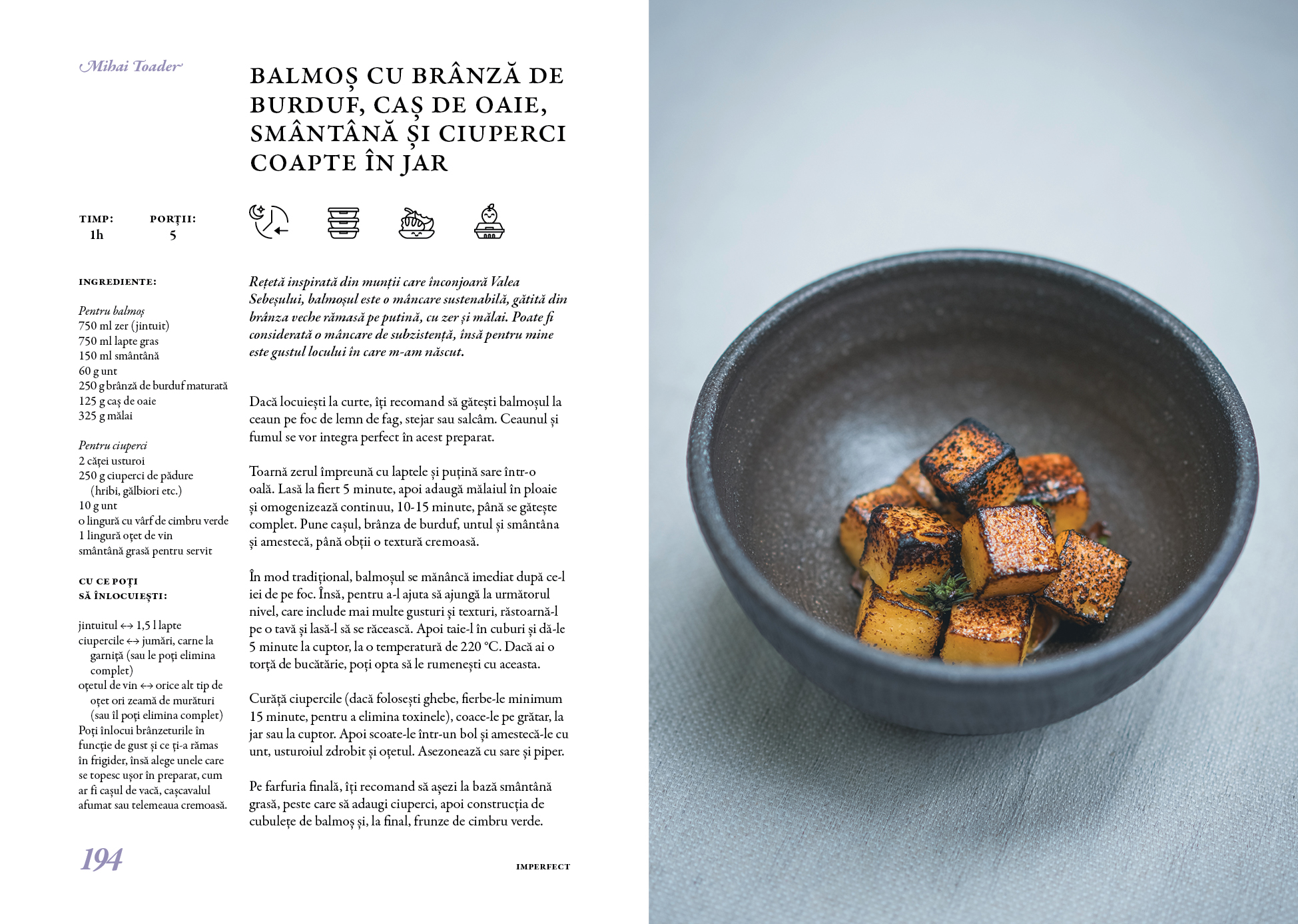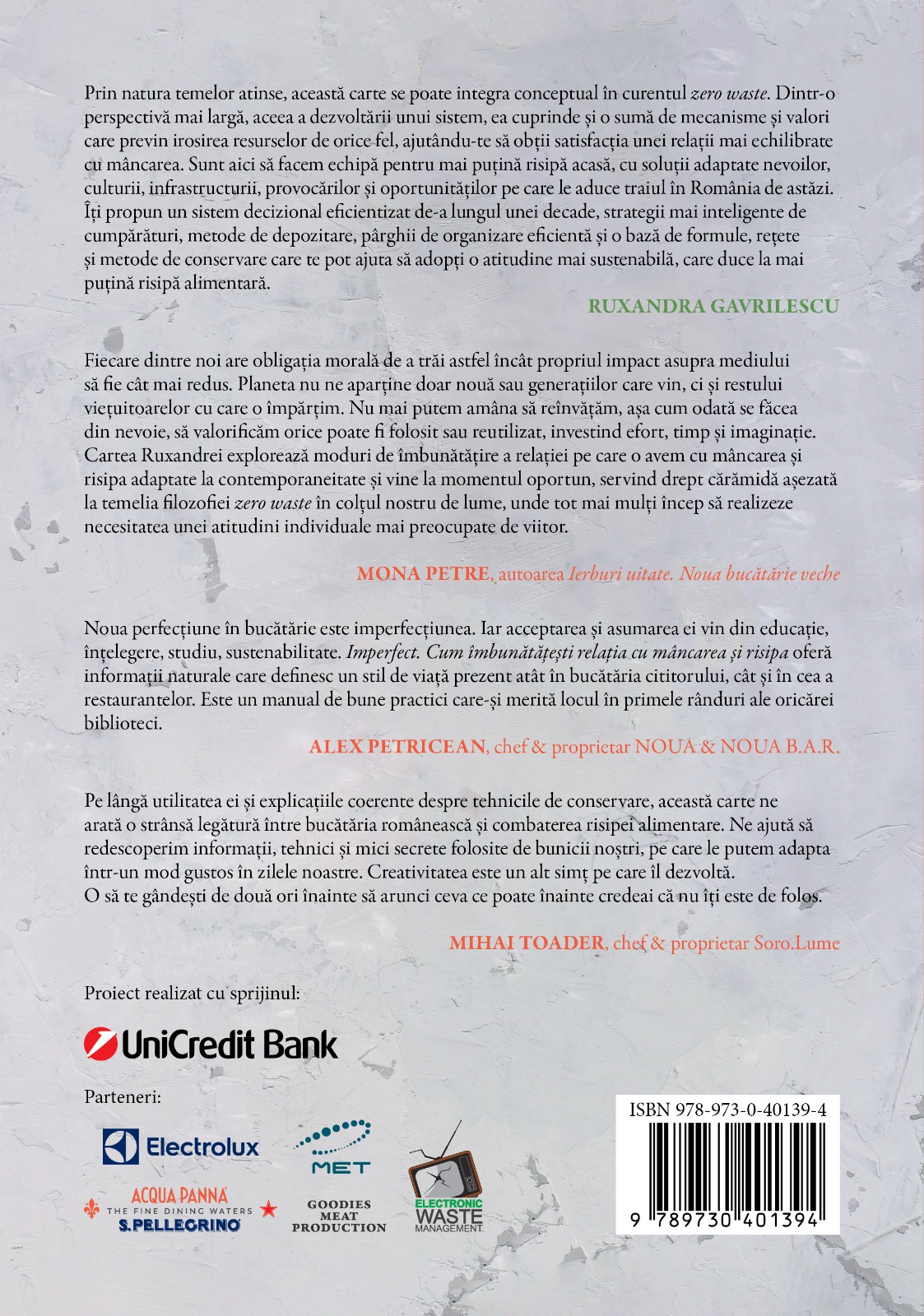 "Noua perfecțiune în bucătărie este imperfecțiunea. Iar acceptarea și asumarea ei vin din educație, înțelegere, studiu, sustenabilitate. Imperfect. Cum îmbunătățești relația cu mâncarea și risipa oferă informații naturale ce definesc un stil de viață prezent atât în bucătăria cititorului, cât și în cea a restaurantelor. Este un manual de bune practici ce-și merită locul în primele rânduri ale oricărei biblioteci."