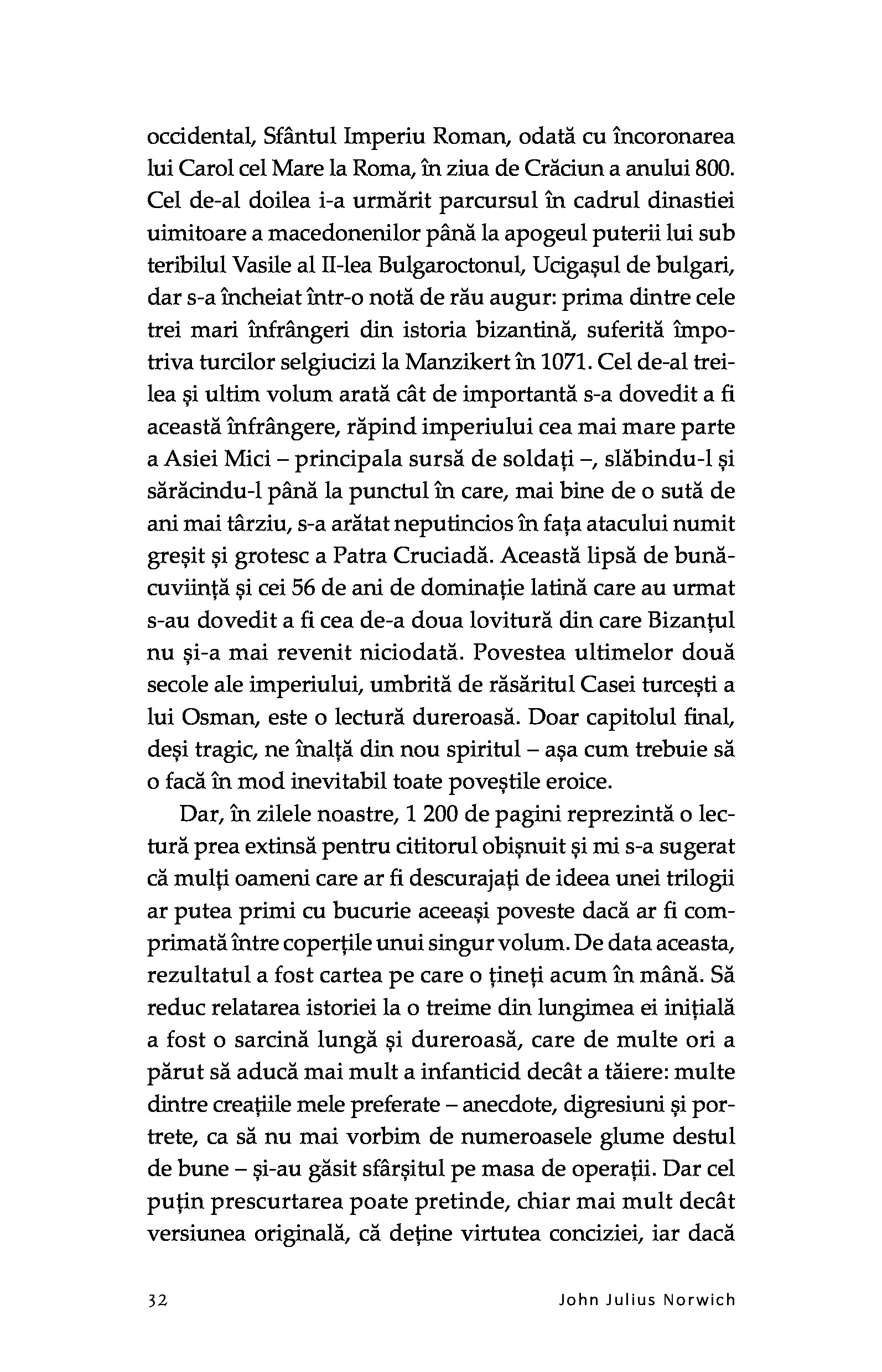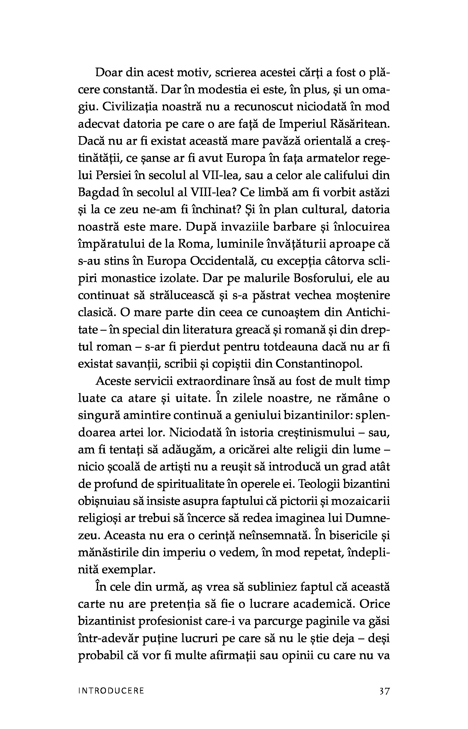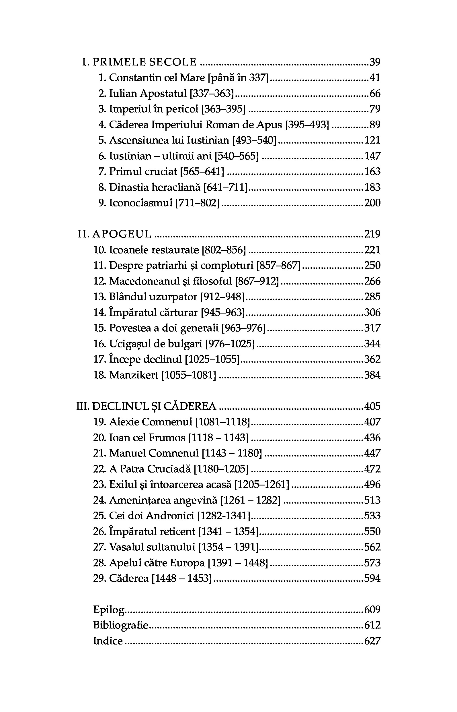 Secole pline de frământări și de aprige dispute despre natura lui Hristos și Biserica Lui. Secole de cunoaștere, în care copiștii și învățații au păstrat și au transmis mai departe moștenirea lumii antice. Secolele unor împărați ca Iustinian cel Mare, Teodosiu și Vasile Bulgaroctonul, oameni pioși, eroici sau monstruoși, însă niciodată, dar niciodată plicticoși.