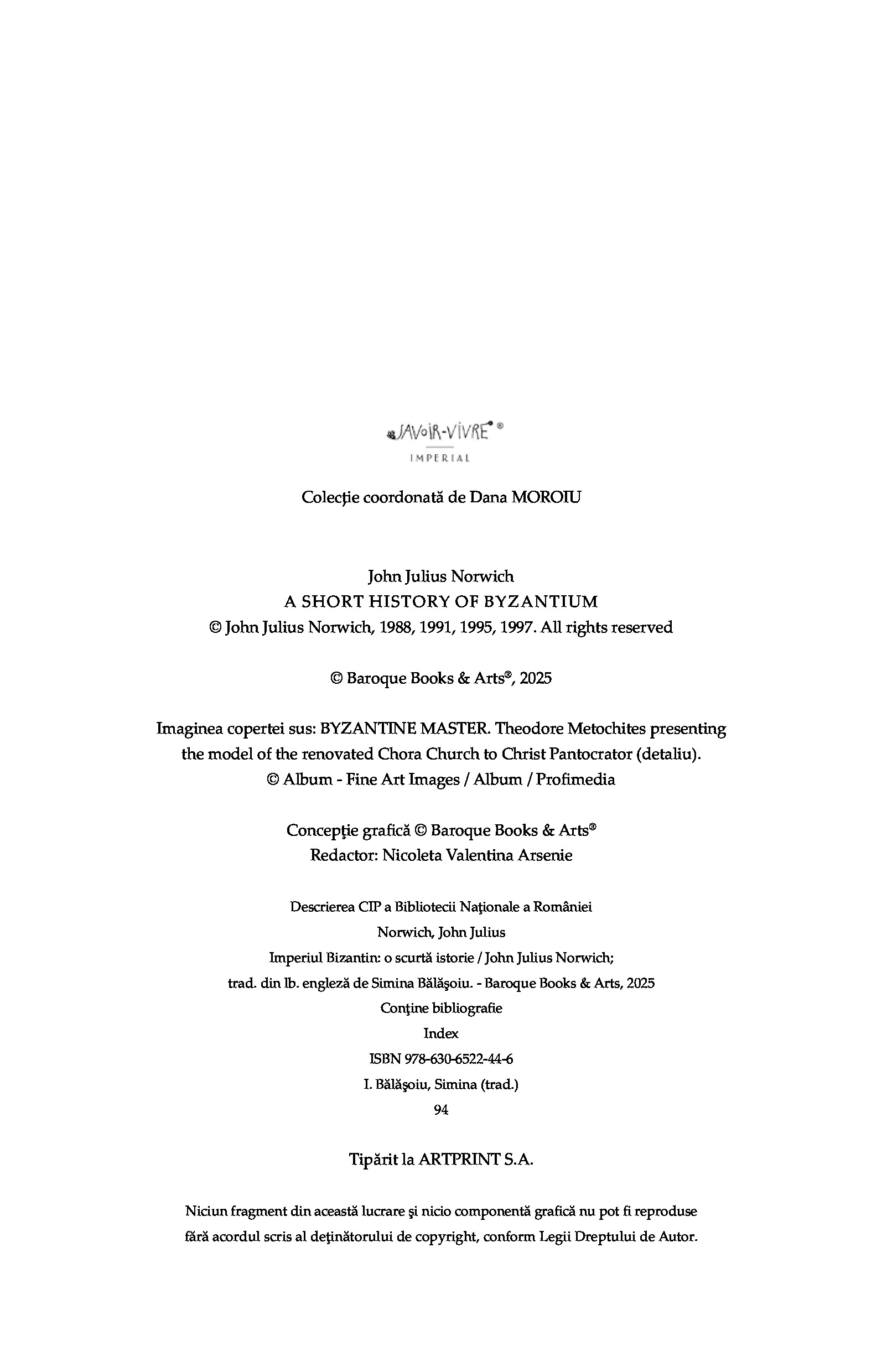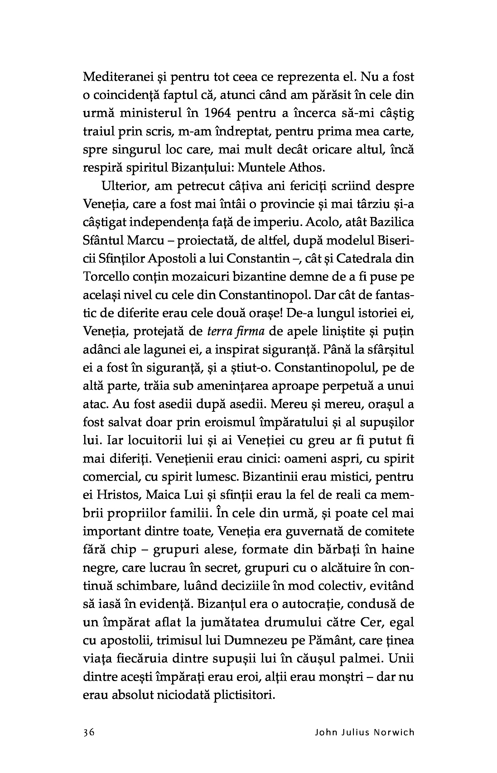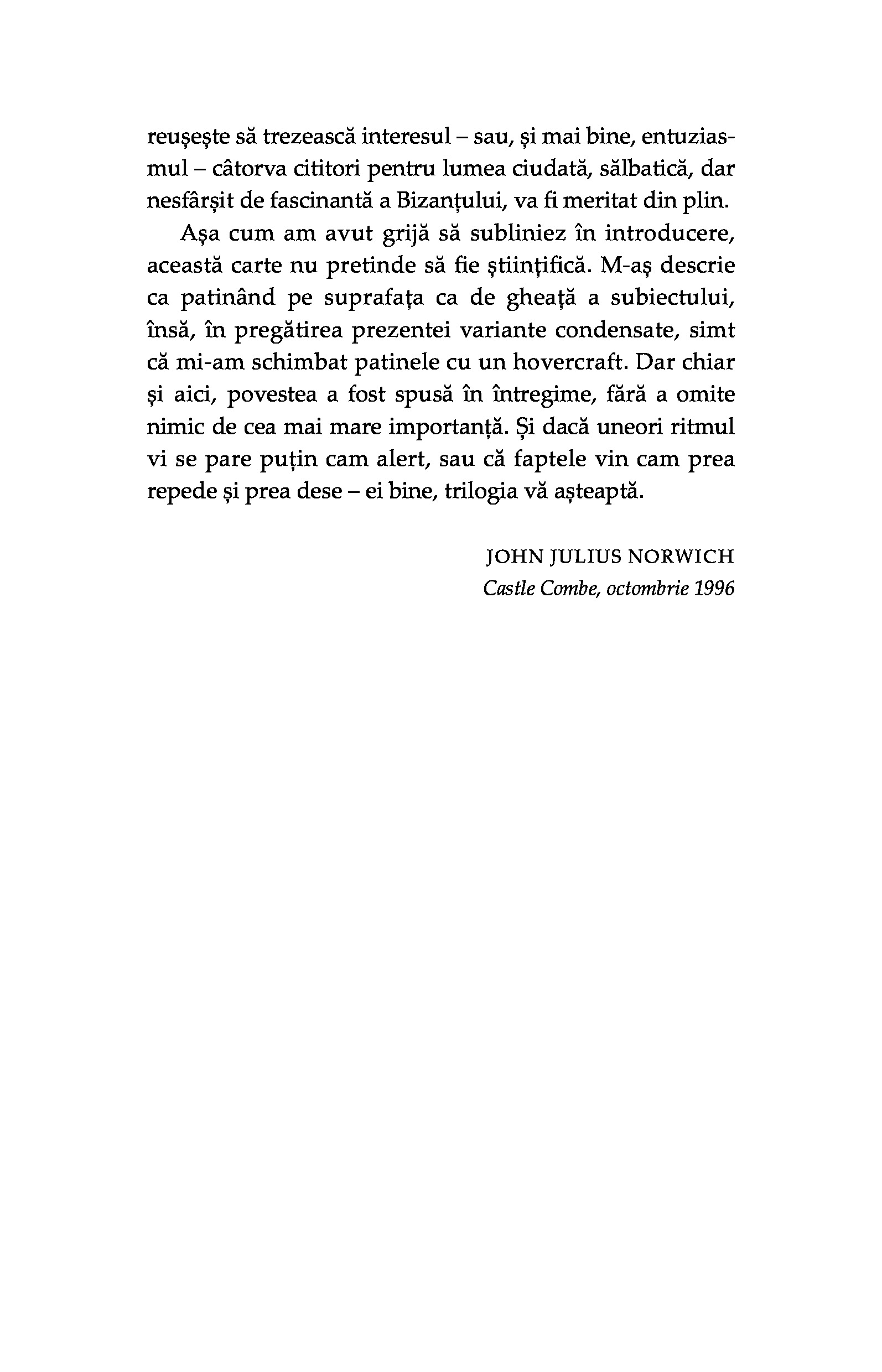 Secole pline de frământări și de aprige dispute despre natura lui Hristos și Biserica Lui. Secole de cunoaștere, în care copiștii și învățații au păstrat și au transmis mai departe moștenirea lumii antice. Secolele unor împărați ca Iustinian cel Mare, Teodosiu și Vasile Bulgaroctonul, oameni pioși, eroici sau monstruoși, însă niciodată, dar niciodată plicticoși.