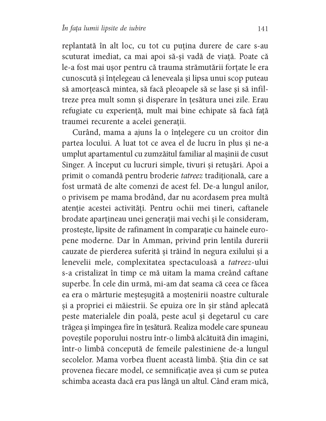 „Romanul lui Abulhawa este, în esenţă, o poveste de dragoste... Însă e o poveste de dragoste ce nu se poate sustrage geografiei, spaţiului unde se desfăşoară. Autoarea construieşte cu eleganţă o lume în care este pusă în lumină tensiunea dintre dorinţă şi supravieţuire.” (The New Yorker)