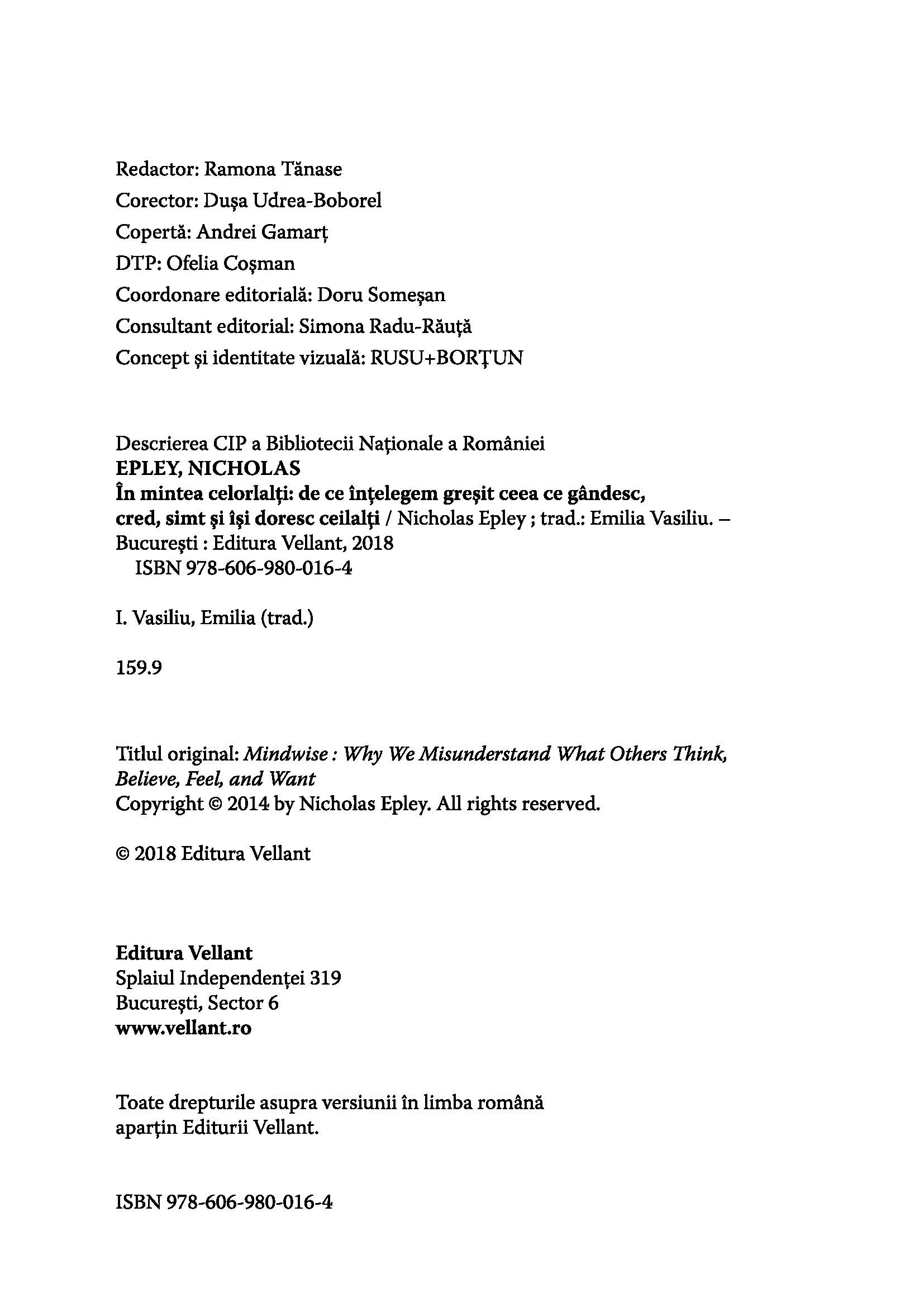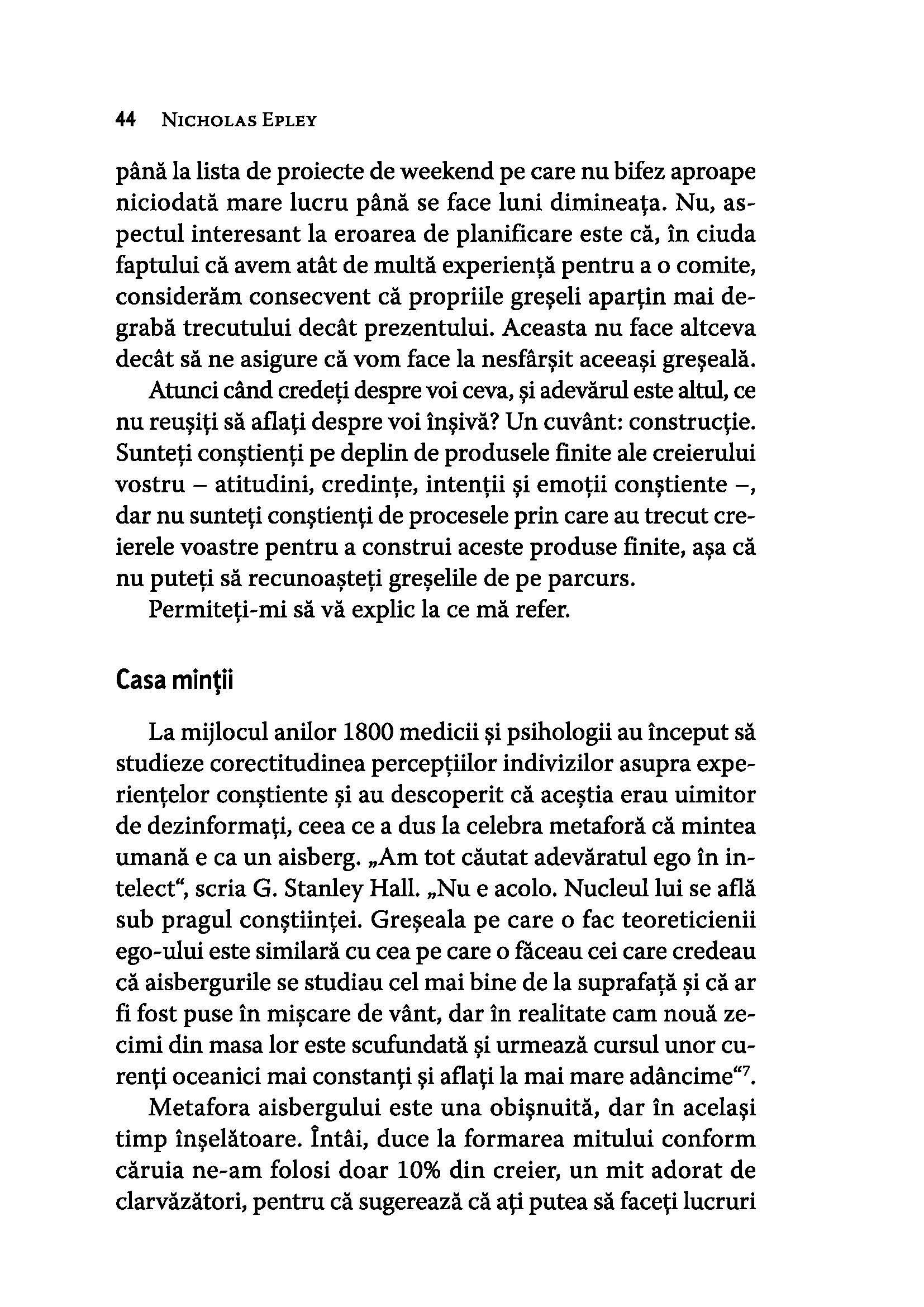 ,,Una dintre cele mai inteligente și spectaculoase cărți pe care le-am citit în ultimii ani. Din cele câteva zeci de carți serioase despre științele sociale dintre care poți alege, capodopera lui Epley este crème de la crème.” - Steven D. Levitt, autorul cărții Freakonomics
