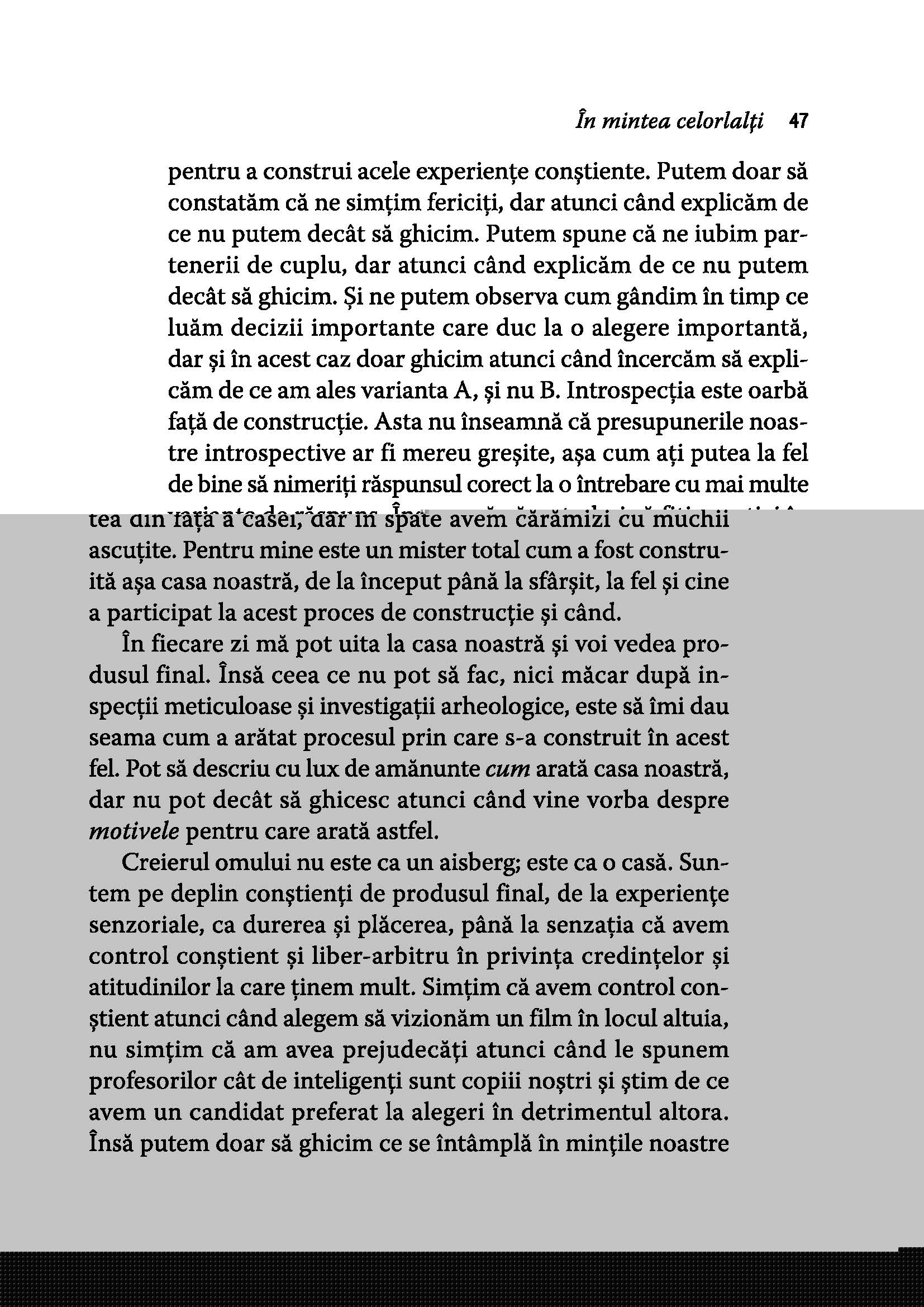 ,,În mintea celorlalți este o minunată explorare a misterelor minții umane, precum și motivele pentru care eșuăm în rezolvarea acestora. Una dintre cele mai bune cărți ale ultimelor decade.” - Daniel Gilbert, autorul cărții Stumbling on Happiness