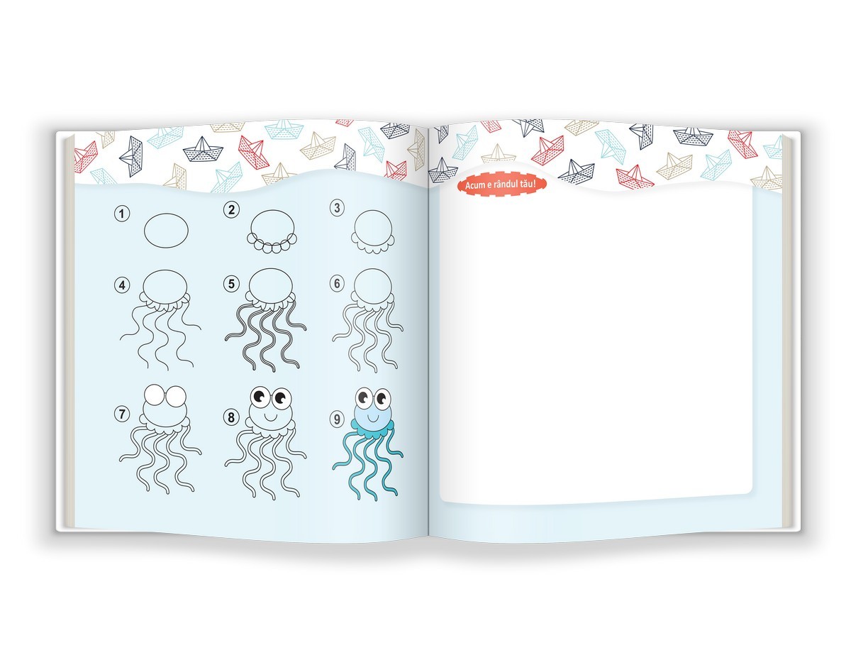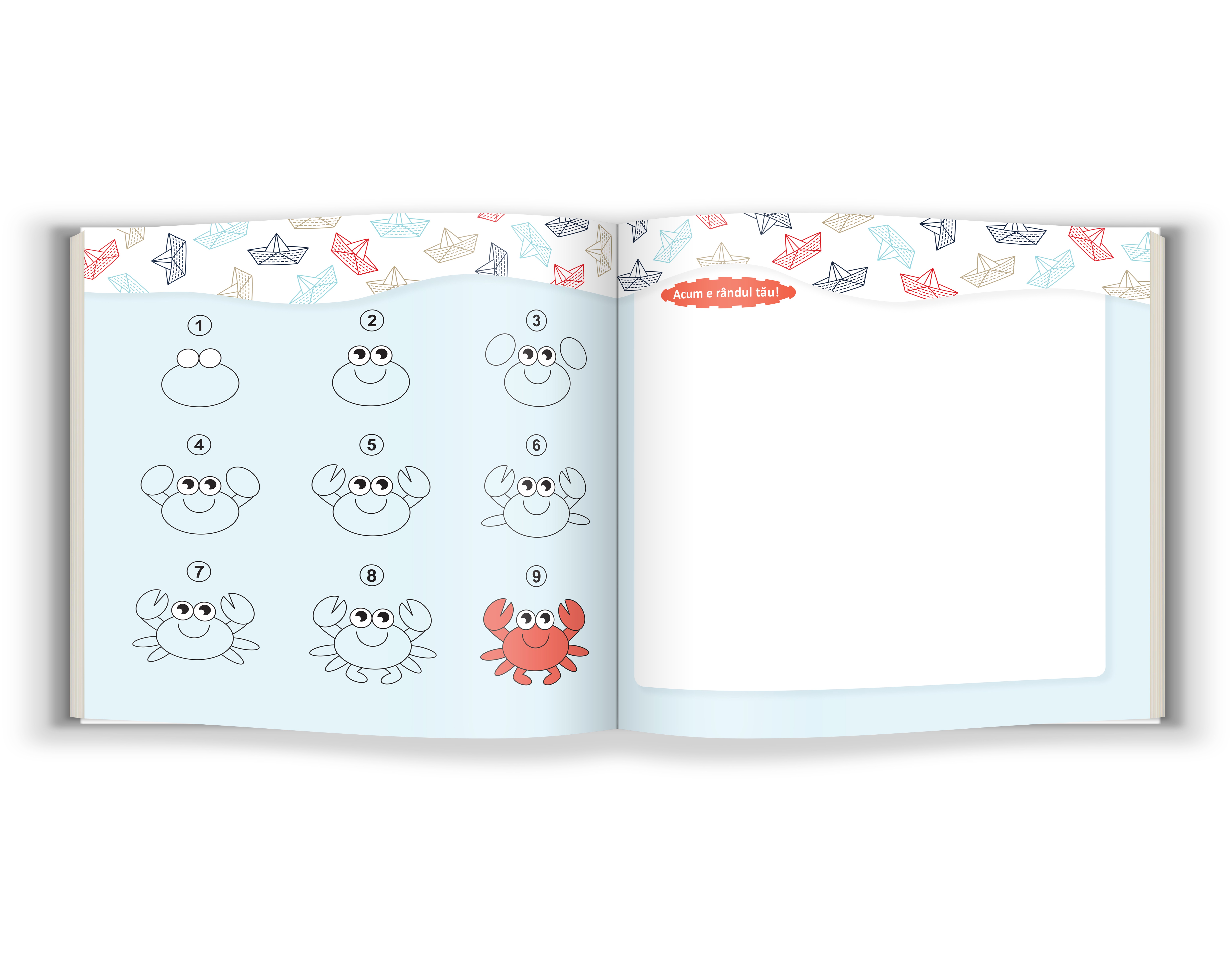 Colecția Lecții de desen îi ajută pe copii să deseneze cu ușurință, le dezvoltă motricitatea fină, concentrarea și coordonarea ochi-mână și le sporește încrederea că, prin exercițiu, pot dobândi orice abilitate. Copiii realizează desene de la zero, conform indicațiilor de pe pagina anterioară.