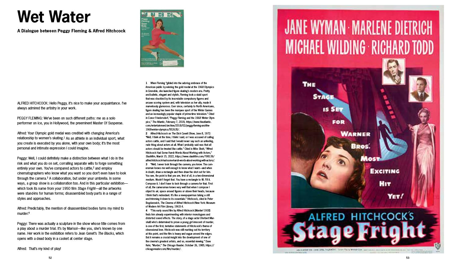 Stage Fright features works by Louise Bourgeois, Constantin Brâncusi, Marcel Duchamp, Marisol, Alberto Giacometti and Alina Szapocznikow that represent the body in extremis―shown ruptured in pieces or pared down to the essentials. The individual pieces act as surrogates that stand in for the whole. Taken together, the works on view embody various conceptions of personhood as routed through objects, whether rendered with aching specificity, as in the clefts and folds of Szapocznikow’s plaster Ventre (Belly) (1968), or invoked as a generic type, as in Marisol’s totemic couple The Blacks (1962). Richly illustrated with installation views from the exhibition, Stage Fright features a new text by Harrison―framed as a dialogue between filmmaker Alfred Hitchcock and figure skater Peggy Fleming―that critically examines the presentation and the artist’s own practice and approach.